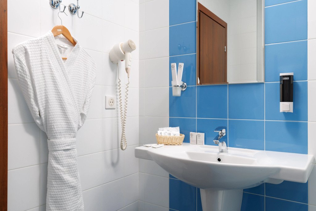 В номерах есть телевизор, кондиционер, сейф, бутилированная вода, халат, тапочки, фен и предметы личной гигиены. Уборка производится каждый день.