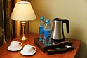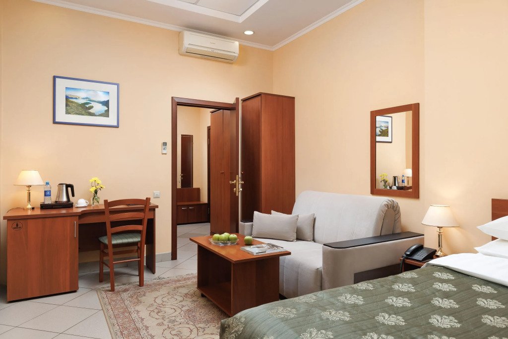 В номерах есть телевизор, мини-бар, кондиционер, сейф, халат, тапочки, фен и предметы личной гигиены. Уборка производится ежедневно, смена белья — раз в три дня.
