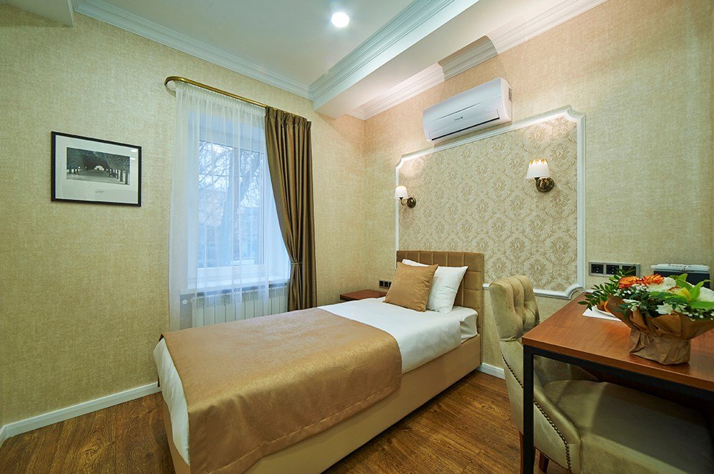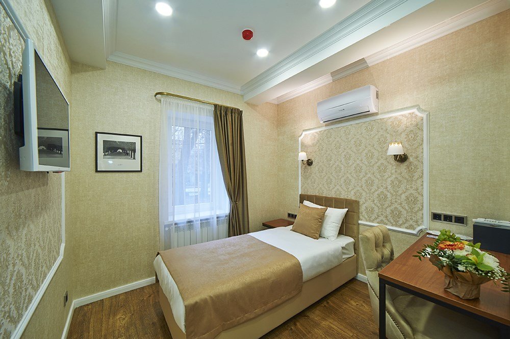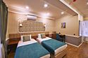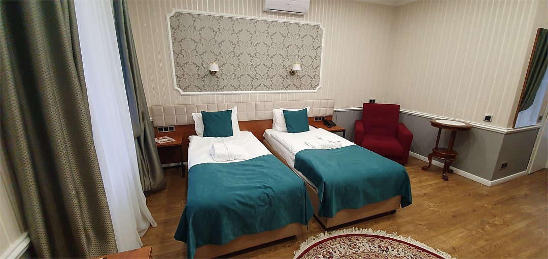 Wi-Fi, интернет, кондиционер, фен, электронные замки, душевая кабина, санузел, банные полотенца, тапочки, косметические средства, две односпальные кровати, стулья, шкаф для одежды, вешалки, письменный стол, зеркало, звуконепроницаемые стены и окна, мини-бар, чайный набор, сейф, раковина, питьевая вода, отопление, кулер на этаже, вид во двор, ламинат, стаканы, стол, туалетные средства, туалет, внутренний телефон, мини-холодильник, телевизор со Smart TV, чайная станцияВ номере
