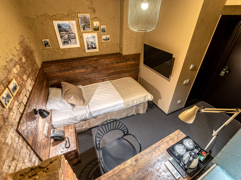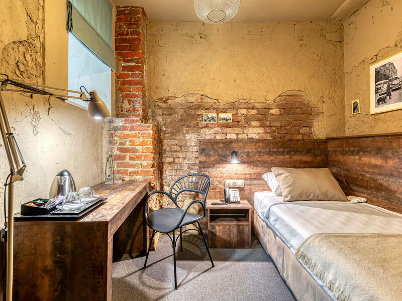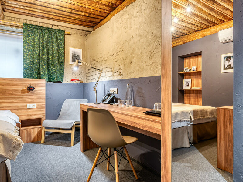 Одноэтажное здание отеля с мезонином располагается на пересечении переулка Сивцев Вражек с Денежным переулком. Небольшой номерной фонд рассчитан всего на 25 человек. Отдыхающих ожидают двухместные номера Стандарт, Делюкс и Супериор.