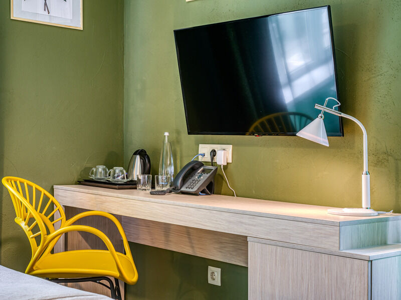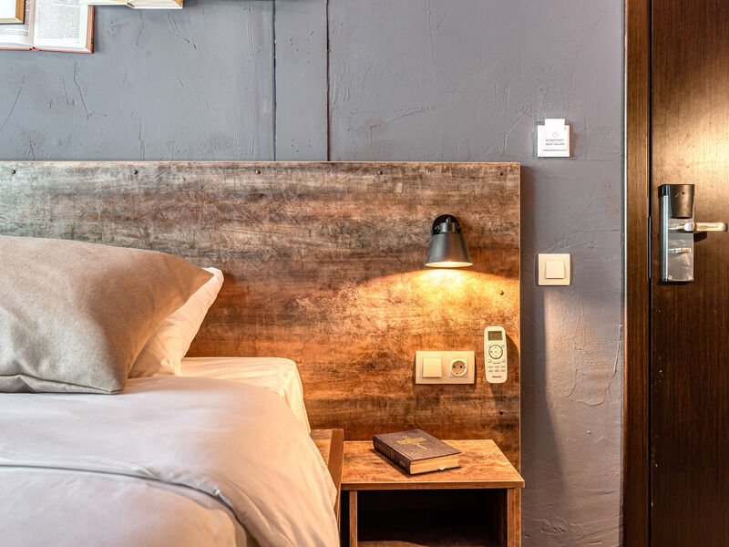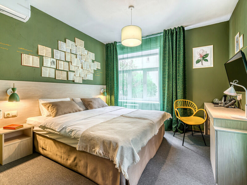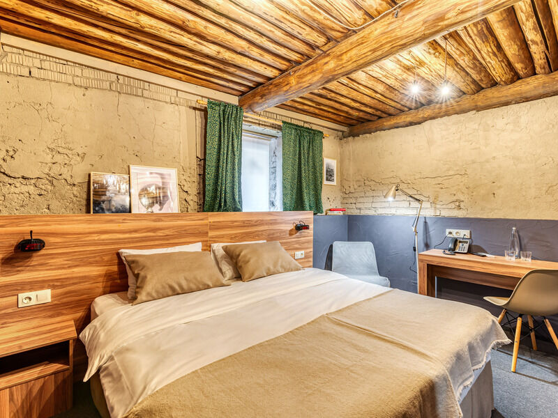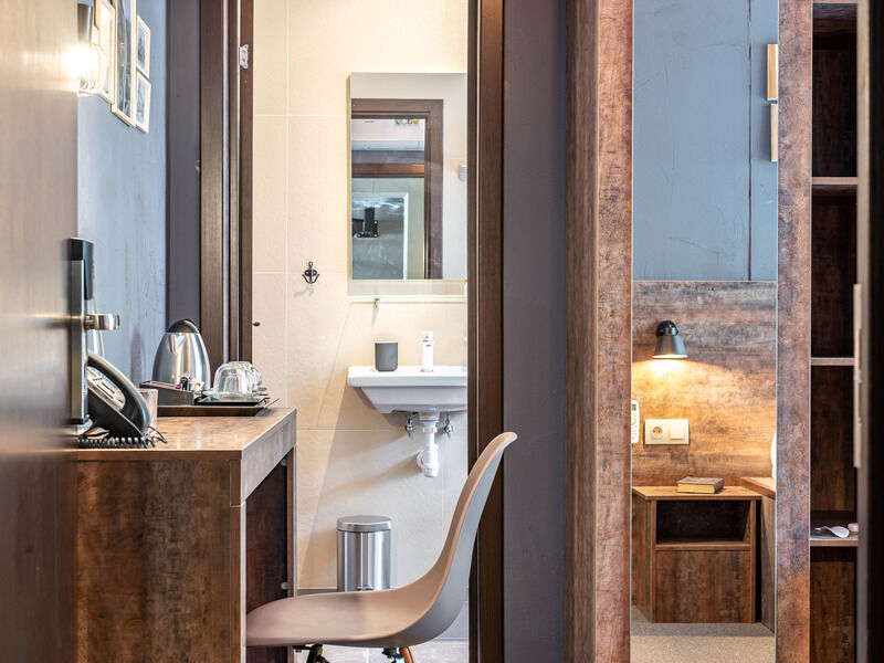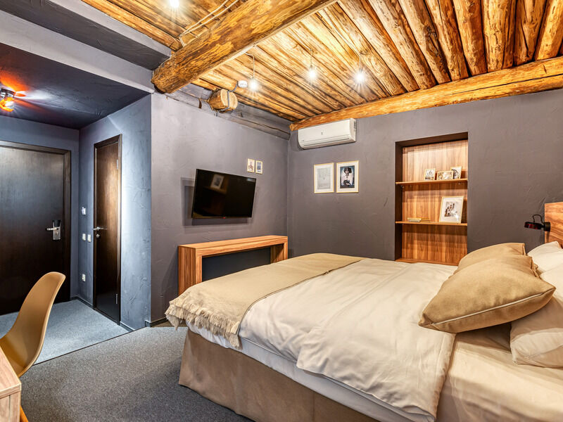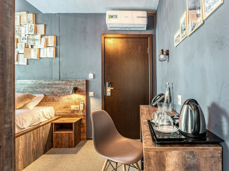 В номерах интересный интерьер, выдержанный в современном стиле лофт. В каждой комнате есть кондиционер, ванная комната с душем и всех необходимая техника, фен, утюг, телевизор. На всей территории отеля довит сеть wi-fi. Автовладельцев организована охраняемая парковка.