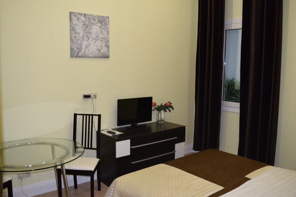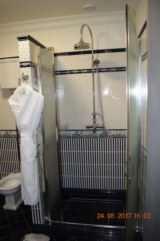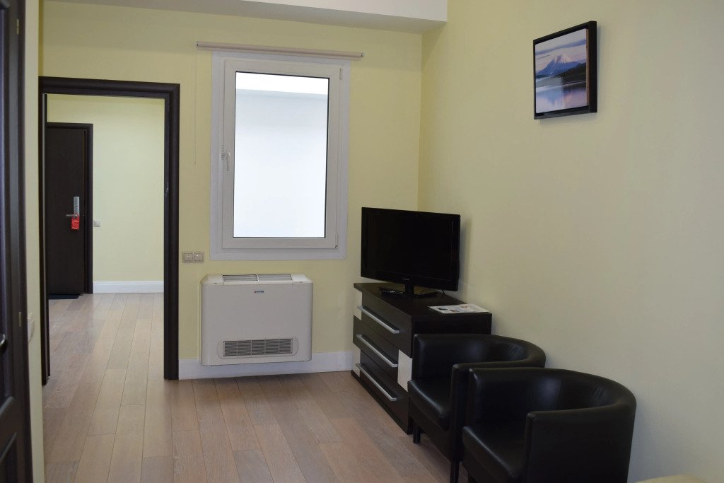 В номере вы найдёте телевизор и халат. Оснащение зависит от выбранной категории номера.