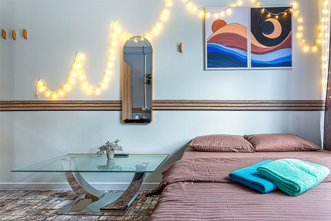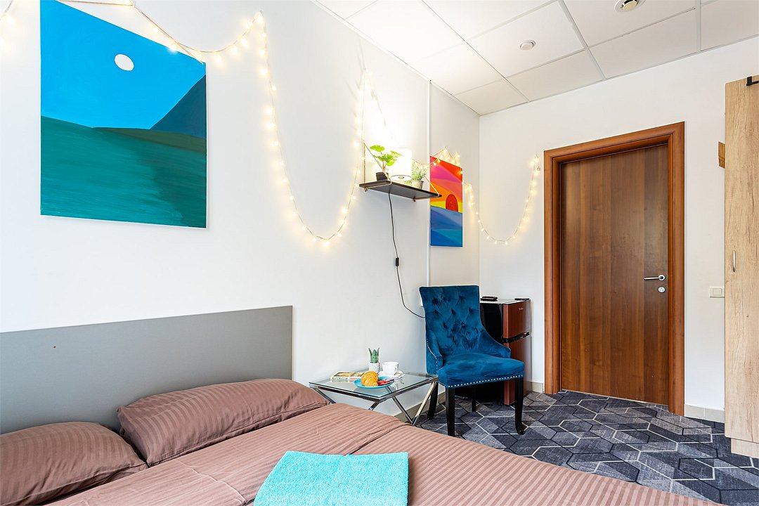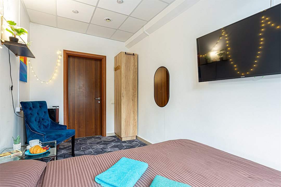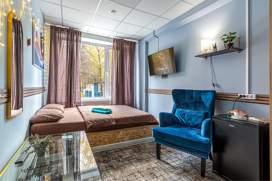 Уютный индивидуальный номер с двуспальной кроватью и телевизором.Услуги и удобства