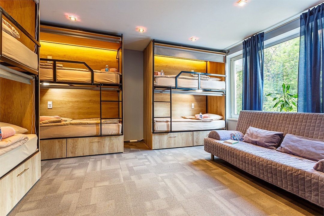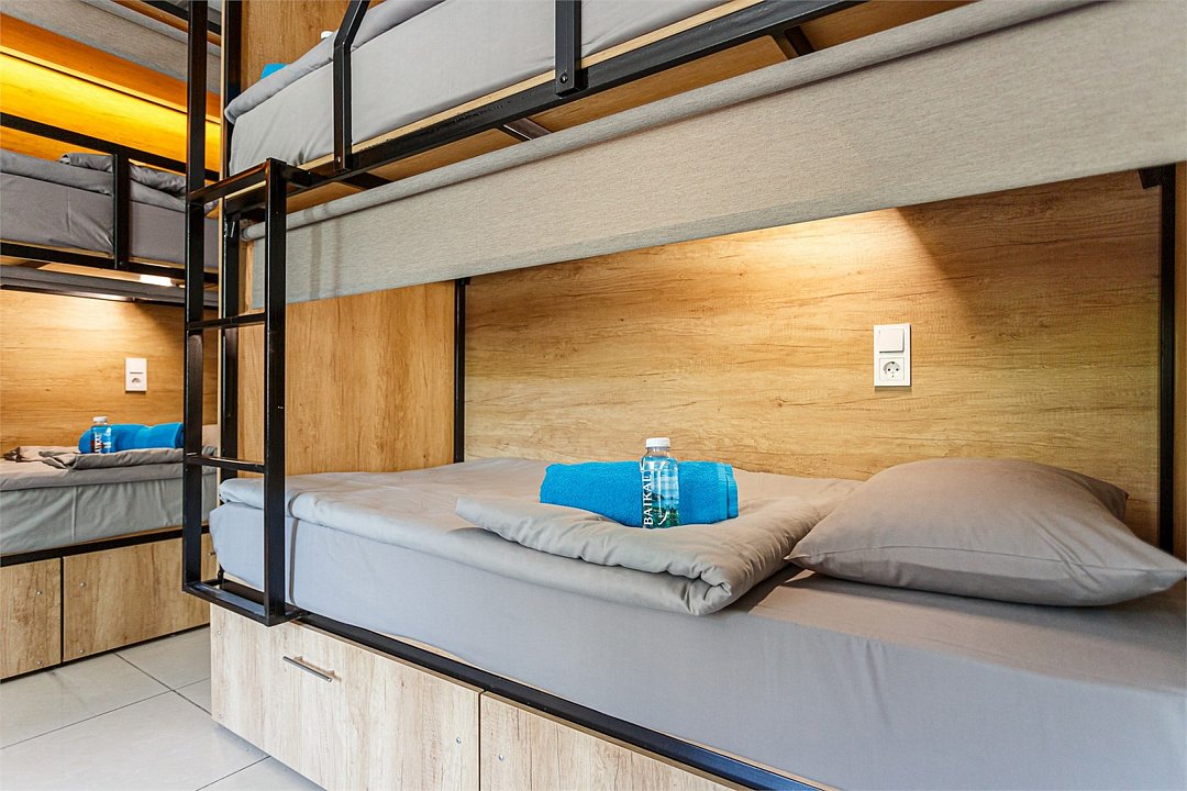 Номер оборудован пятью комфортными двухъярусными кроватями высшего класса с ортопедическими матрасами, индивидуальным освещением, розеткой, откидным столиком и плотной шторкой.Услуги и удобства