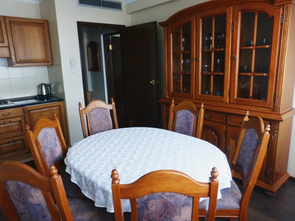 телевизор, Wi-Fi, телефон, холодильник, гигиенические средства, двуспальная кровать, шкаф для одежды, письменный стол, зеркало, кухня, унитаз, раковина, гостиная зона, душ, три комнаты, стул, туалет, сплит-системаВ гостиничном номере