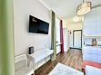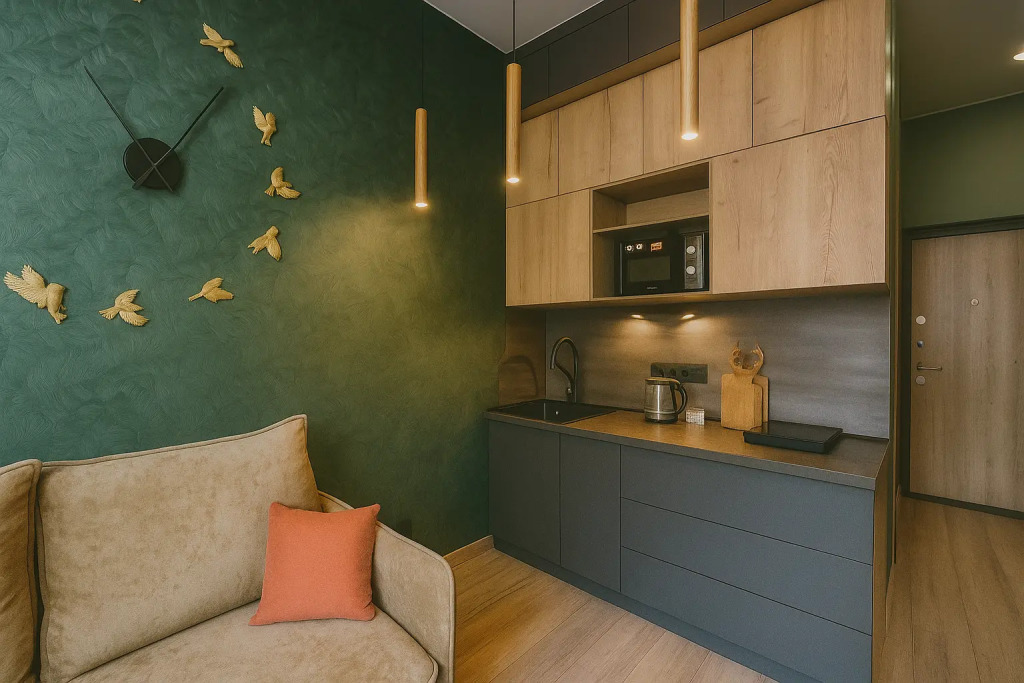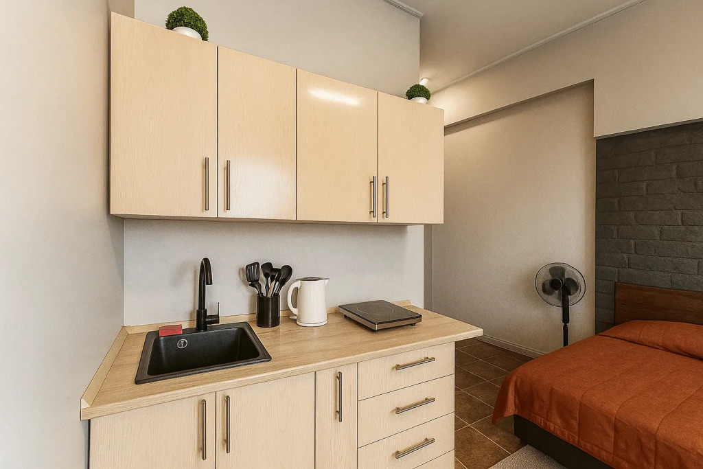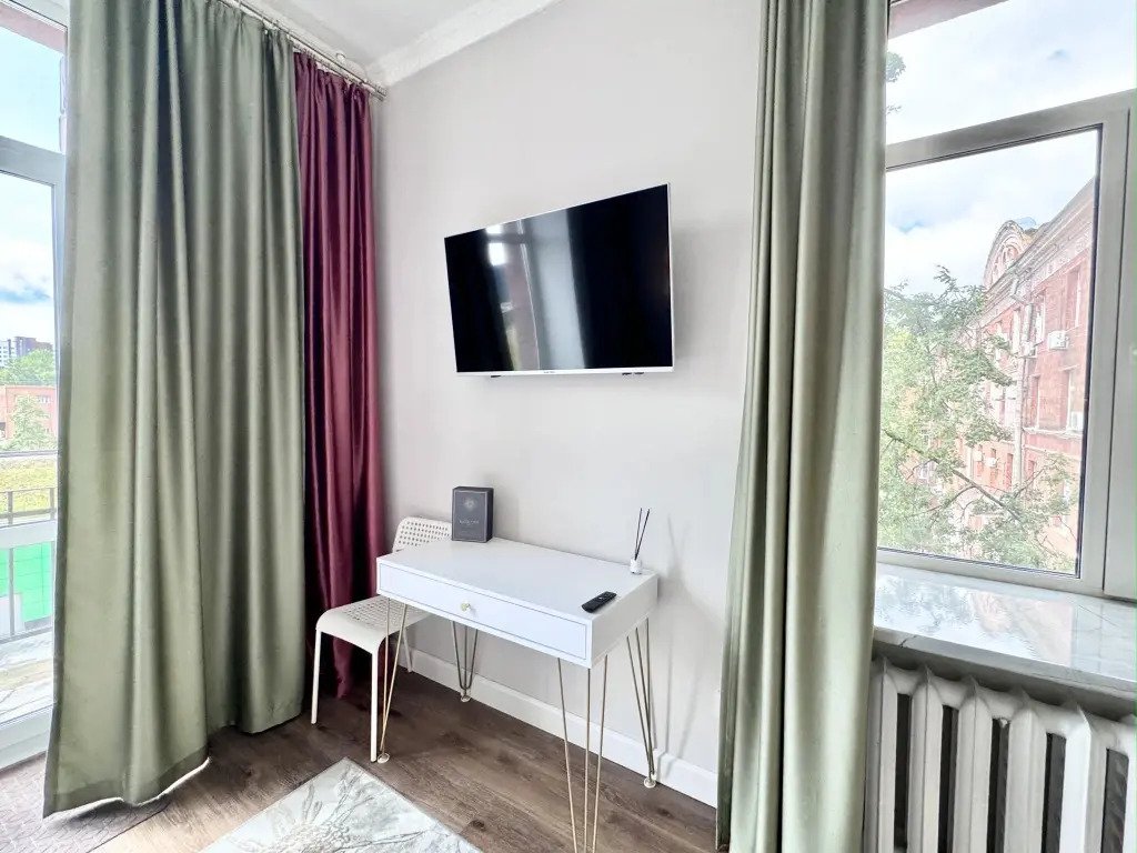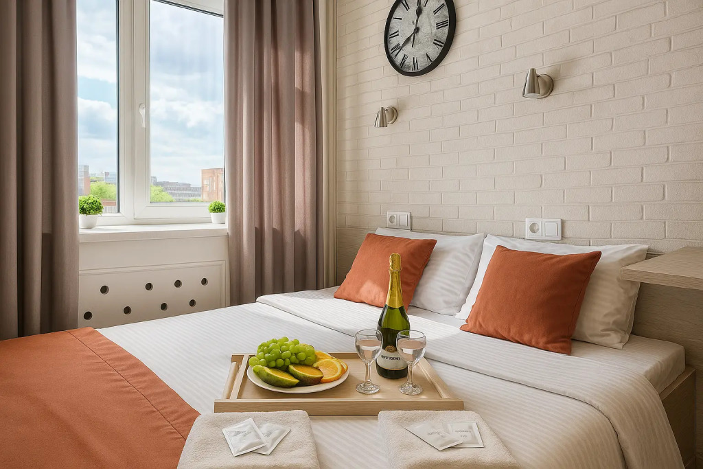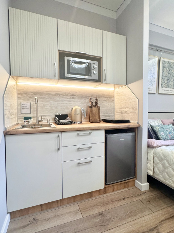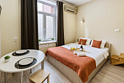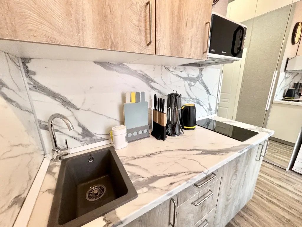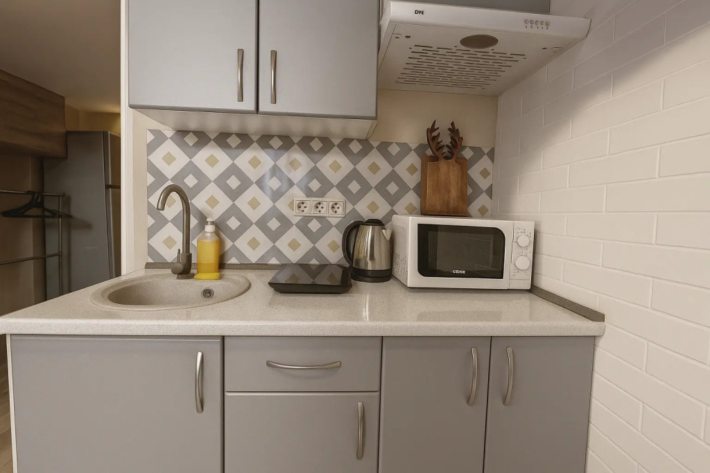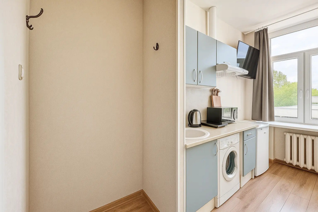 Небольшие студии с дизайнерским ремонтом, где есть всё необходимое для комфортного проживания: бесплатный Wi-Fi, телевизор, плита, холодильник, микроволновка, фен, всё для сервировки стола. Уборка и дезинфекция проводятся после каждого заезда. Размещение подходит как для командированных сотрудников, так и для тех, кто просто хочет отдохнуть в непринужденной обстановке.