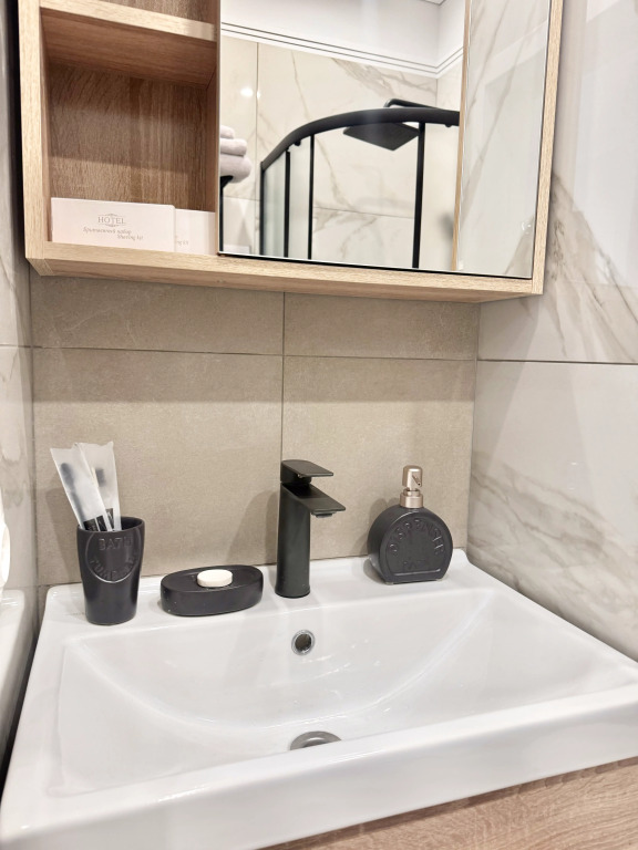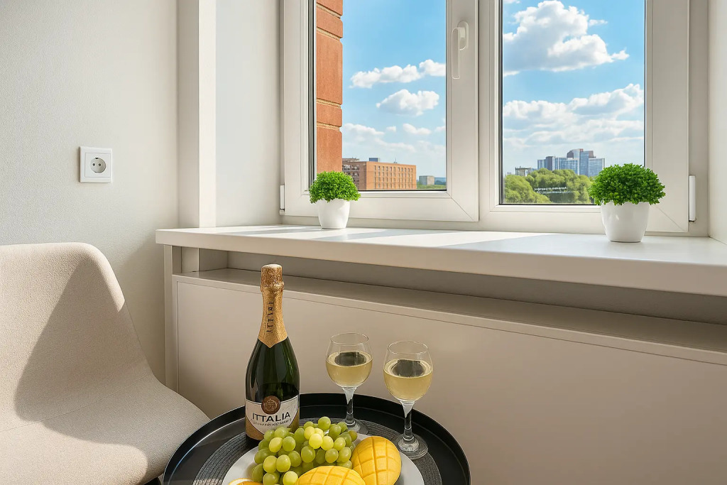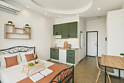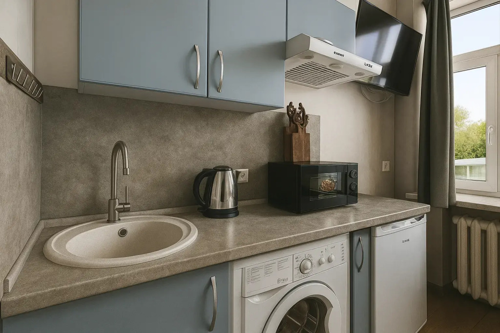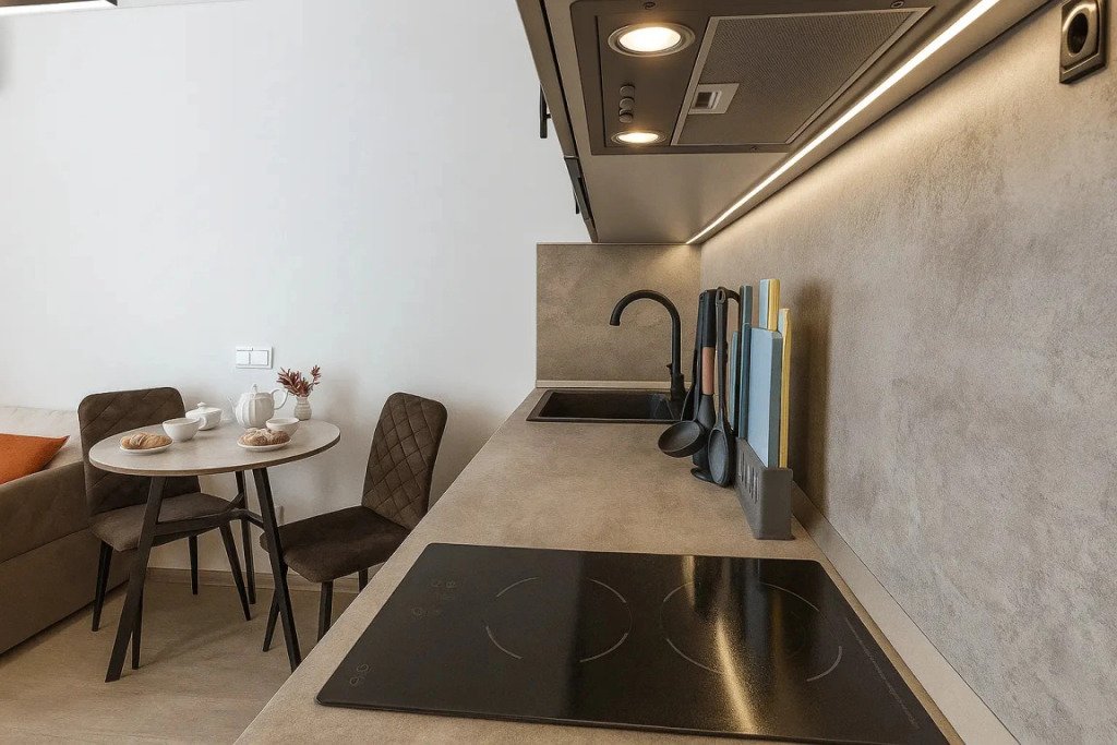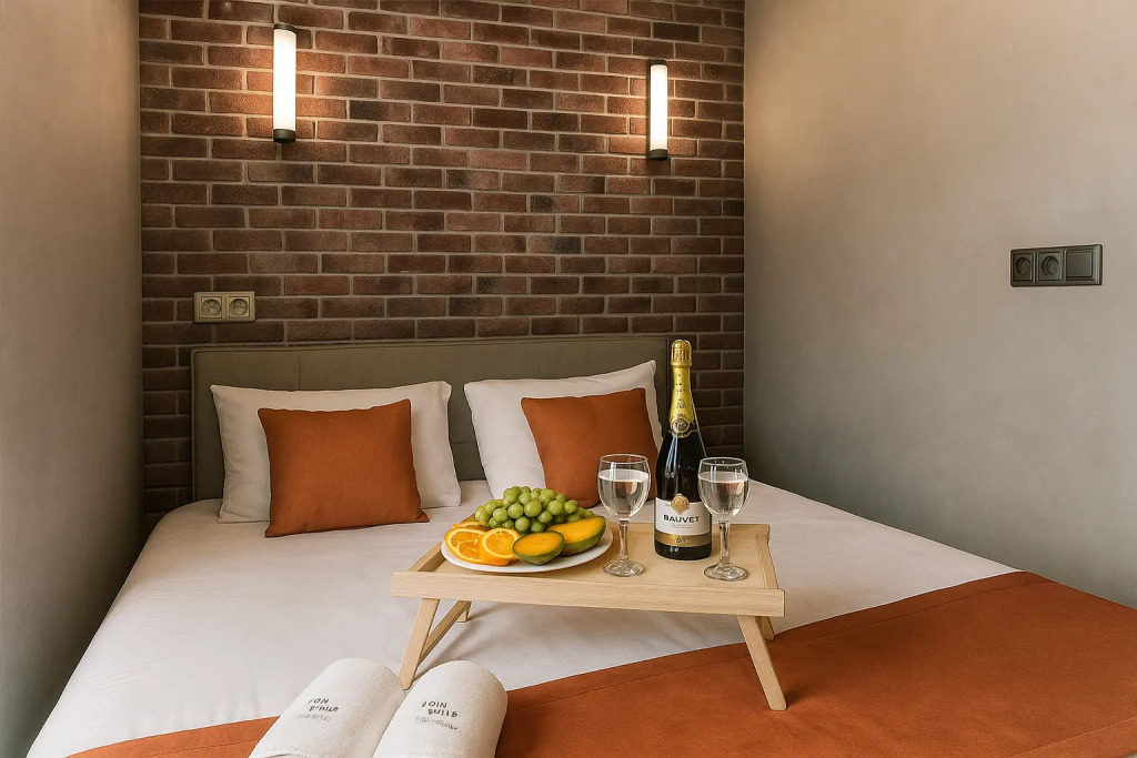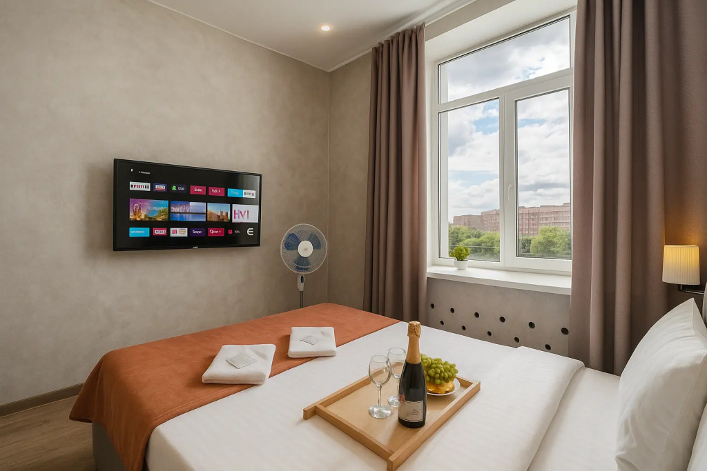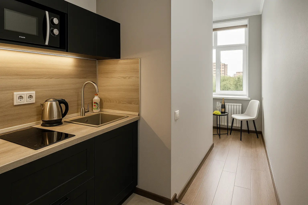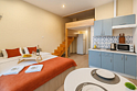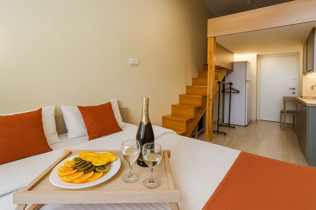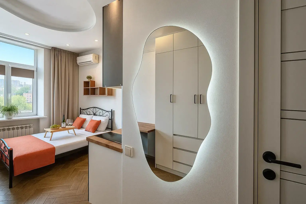 Небольшие студии с дизайнерским ремонтом, где есть всё необходимое для комфортного проживания: бесплатный Wi-Fi, телевизор, плита, холодильник, микроволновка, фен, всё для сервировки стола. Уборка и дезинфекция проводятся после каждого заезда. Размещение подходит как для командированных сотрудников, так и для тех, кто просто хочет отдохнуть в непринужденной обстановке.