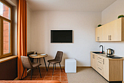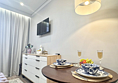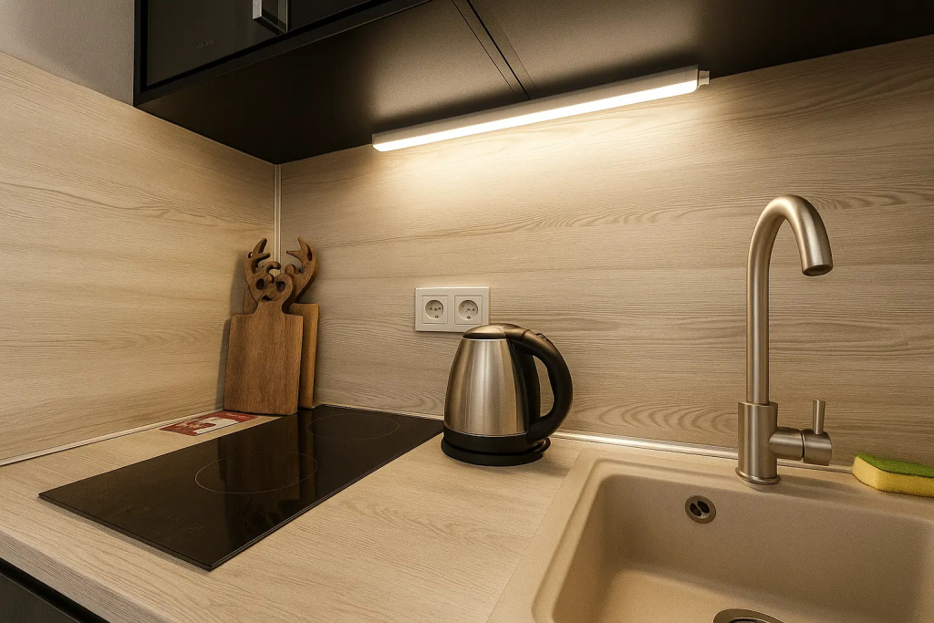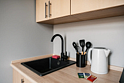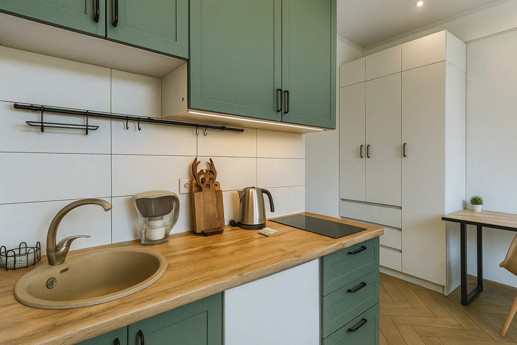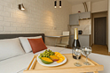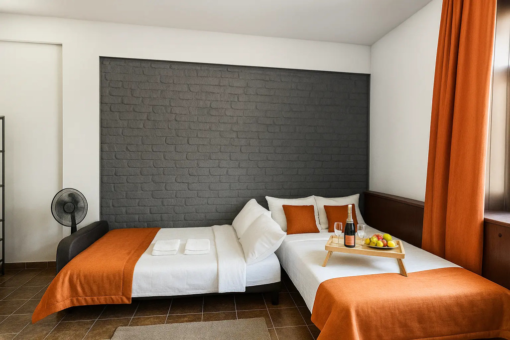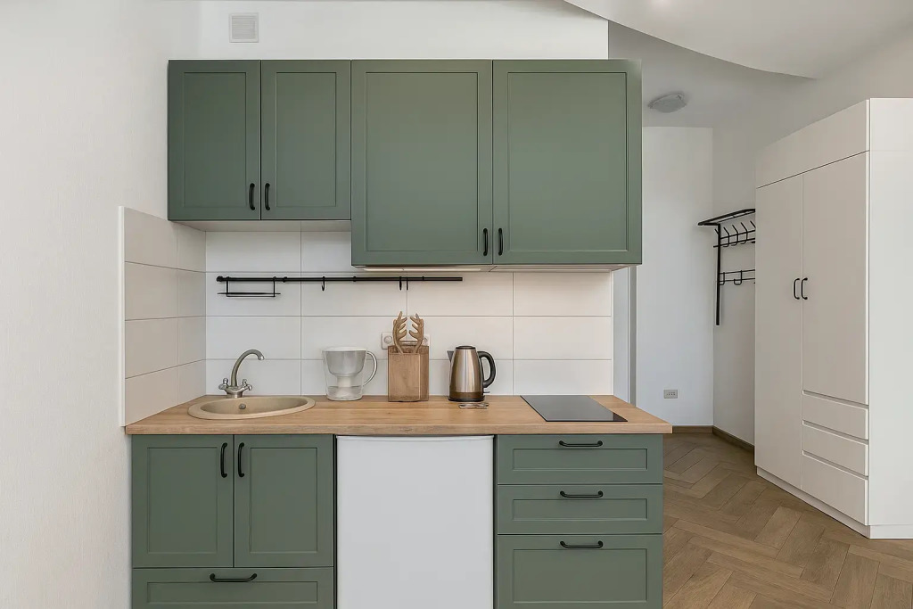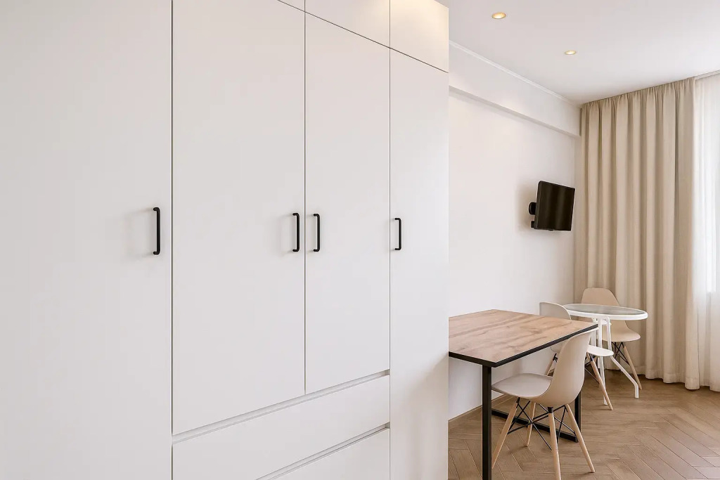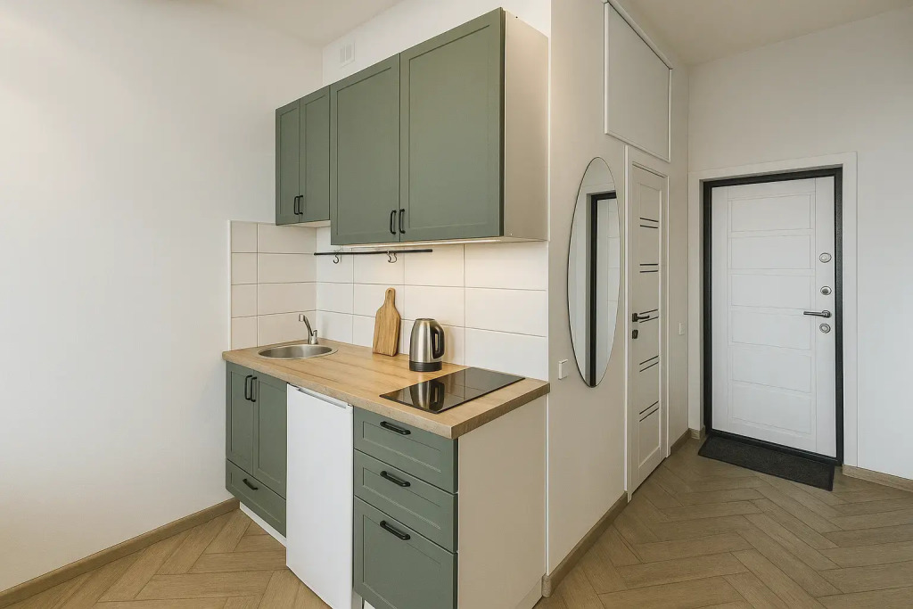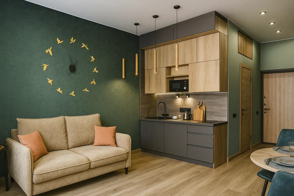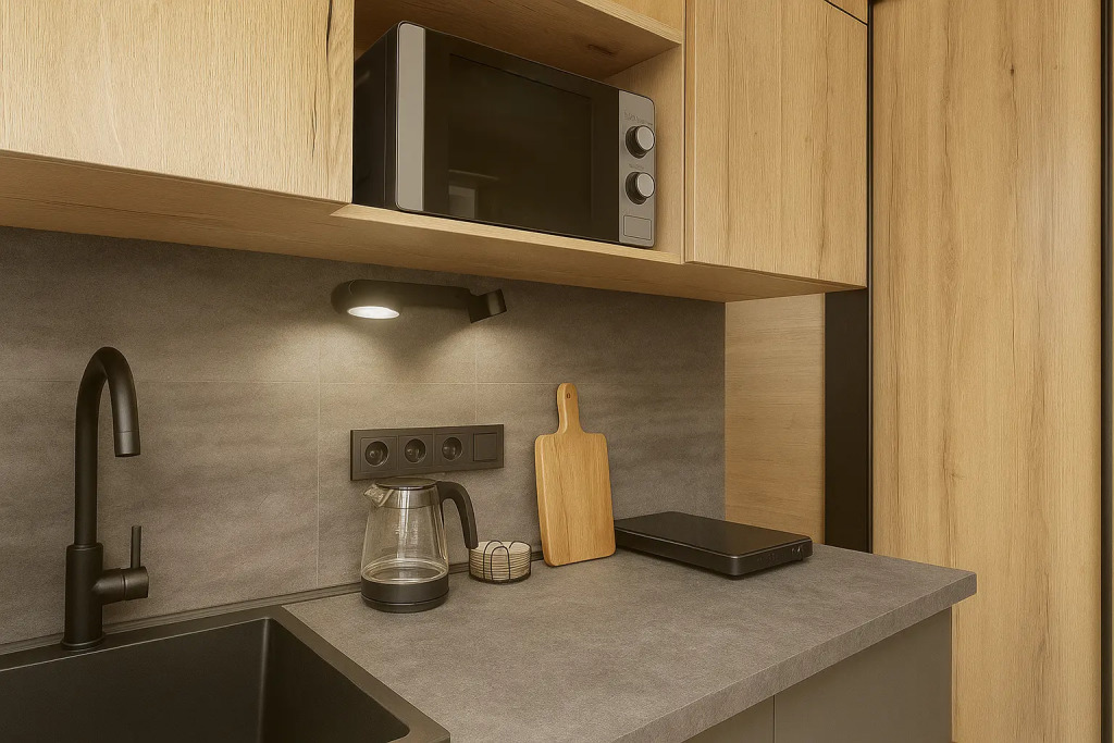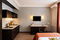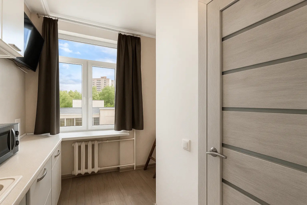 Небольшие студии с дизайнерским ремонтом, где есть всё необходимое для комфортного проживания: бесплатный Wi-Fi, телевизор, плита, холодильник, микроволновка, фен, всё для сервировки стола. Уборка и дезинфекция проводятся после каждого заезда. Размещение подходит как для командированных сотрудников, так и для тех, кто просто хочет отдохнуть в непринужденной обстановке.