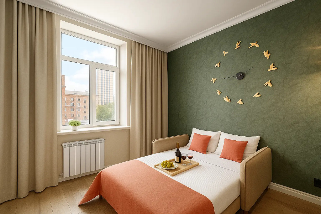 Номер полутороспальный диван Комфорт Мини с видом на город