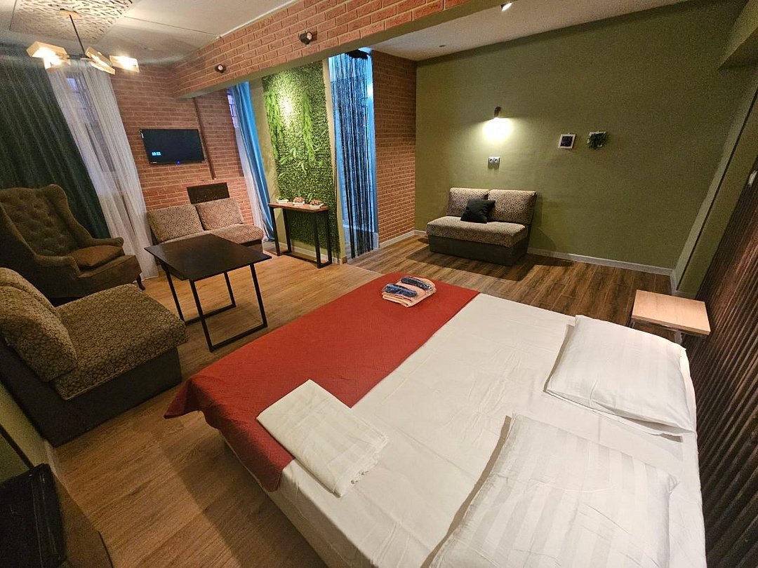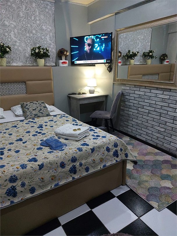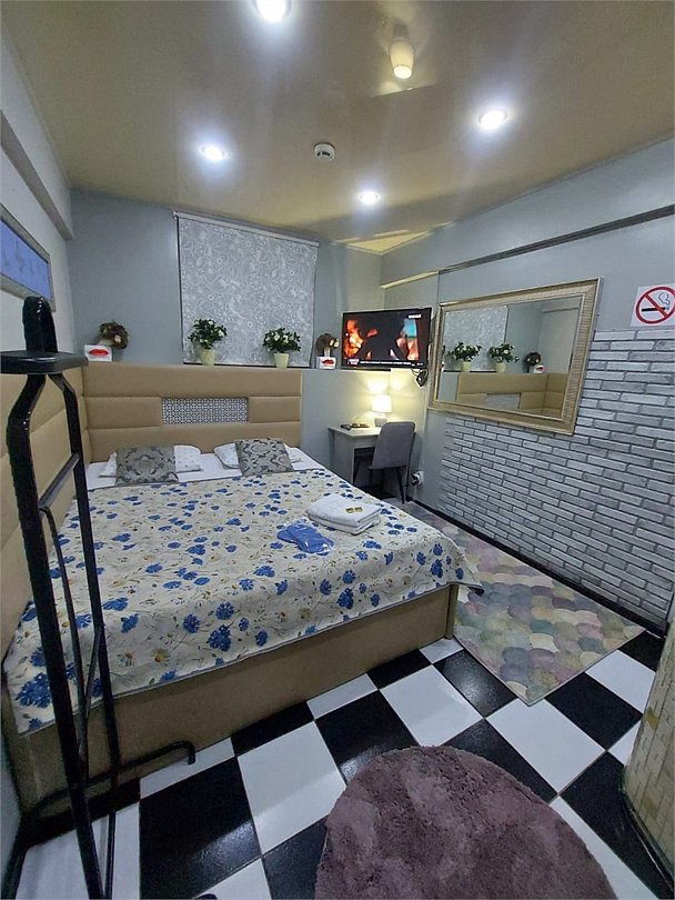 Комфортный и опрятный номер со всеми необходимым для приятного отдыха. Номер уютно обставлен и оснащён необходимым, чтобы отдохнуть после долгого и насыщенного дня. Имеются телевизор, мини-бар и халат. Разрешается проживание с животным. В распоряжении гостей гладильная доска и утюг по запросу. Персонал мини-отеля говорит на английском и русском.Услуги и удобства