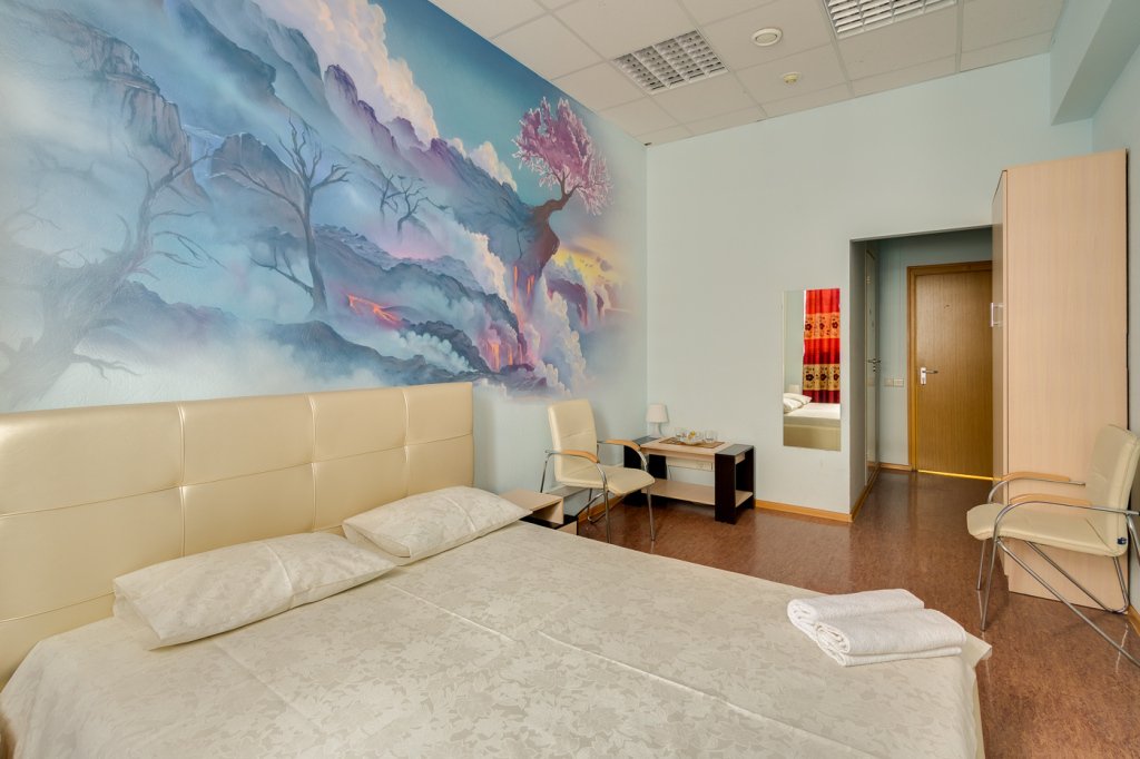 В номере вы найдёте телевизор. Оснащение зависит от выбранной категории номера.