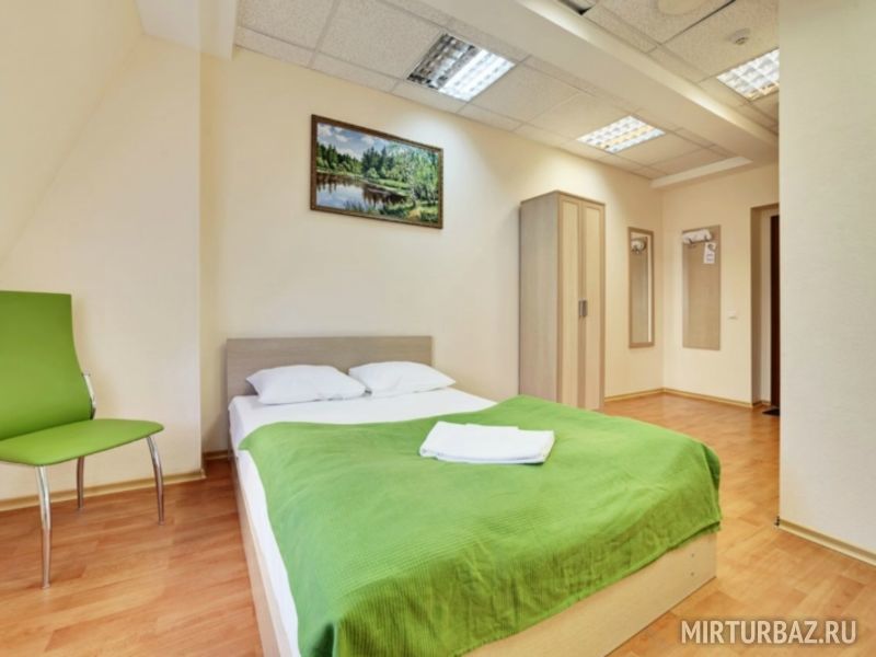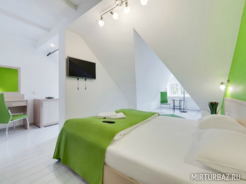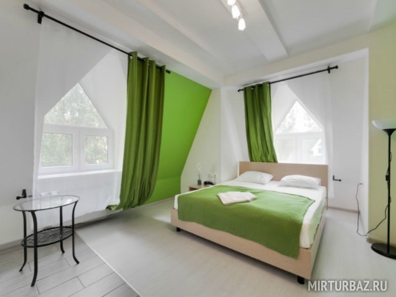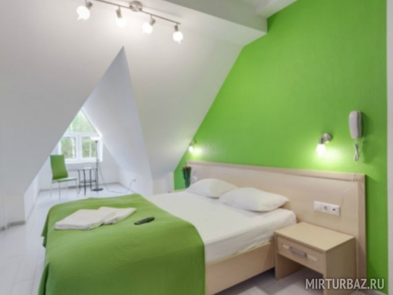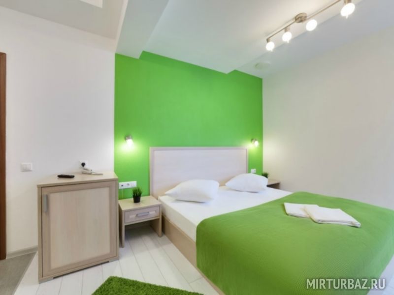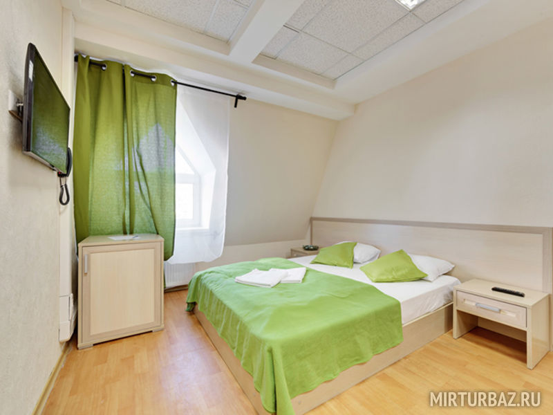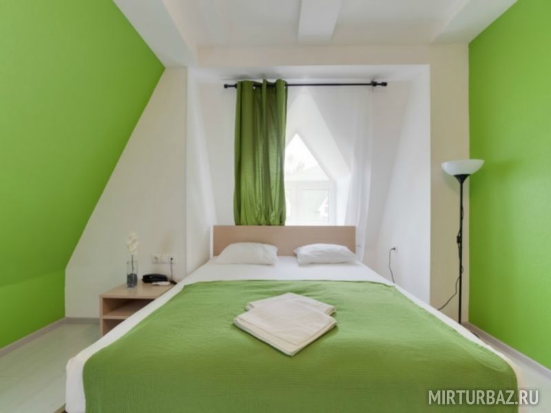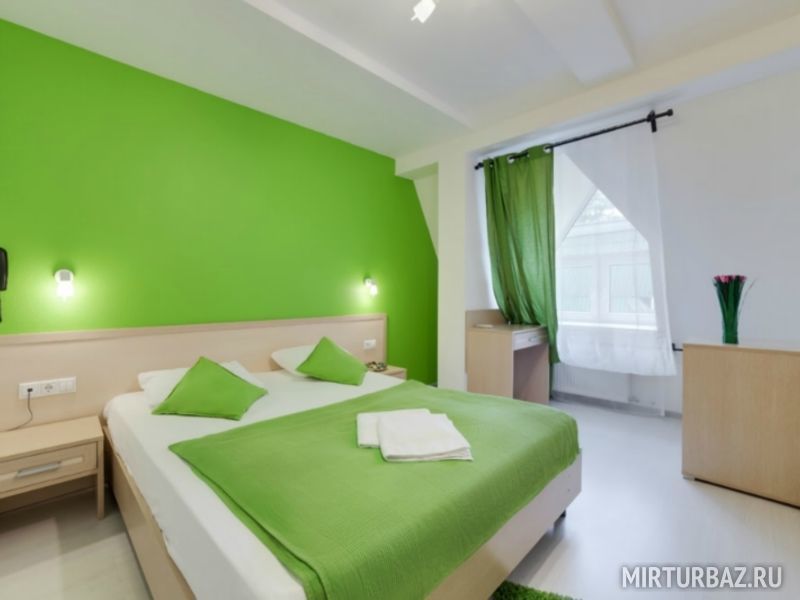 Гостиница занимает четырехэтажное здание с закрытой благоустроенной территорией. Жилой фонд представлен уютными номерами, оформленными в мягких белых, бежевых и зеленых тонах. К услугам гостей комнаты различных категорий — от стандартных до люксовых, каждая из которых полностью укомплектована современной мебелью и техникой, а также располагает собственной ванной комнатой.