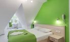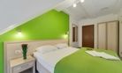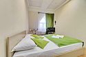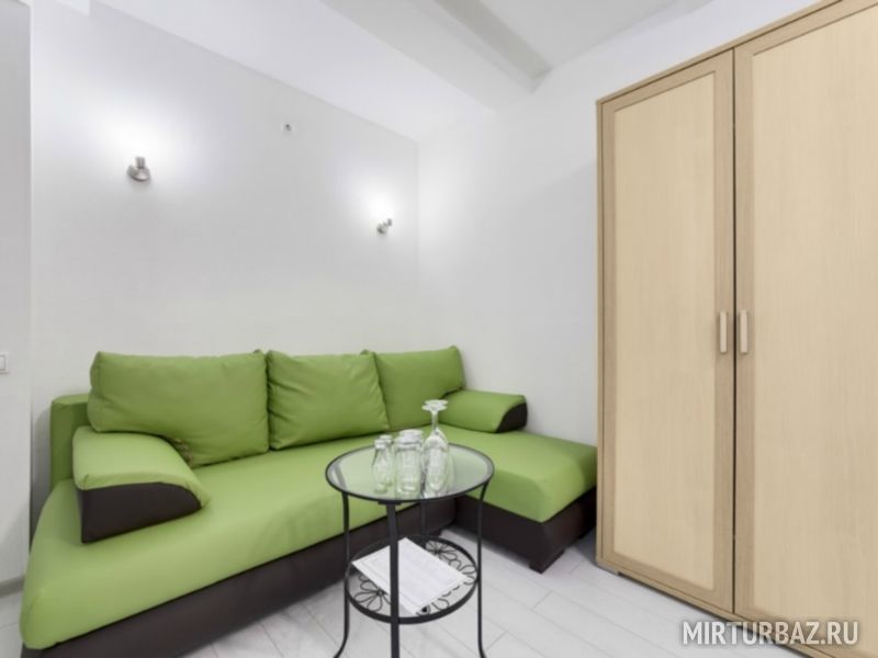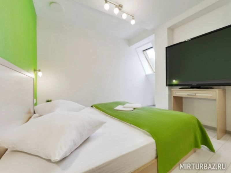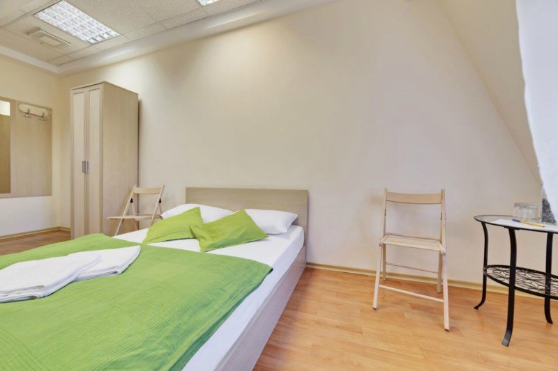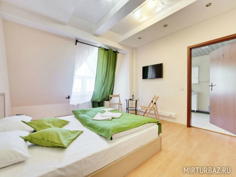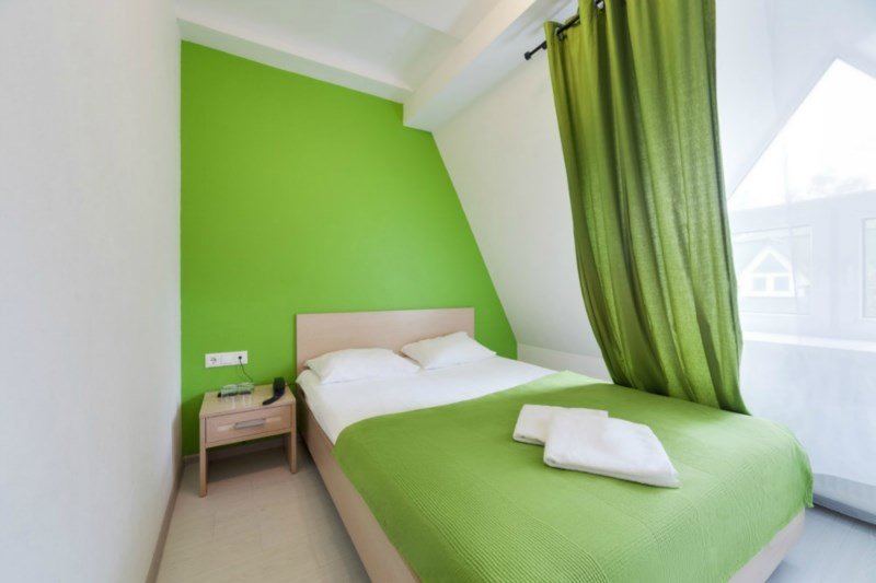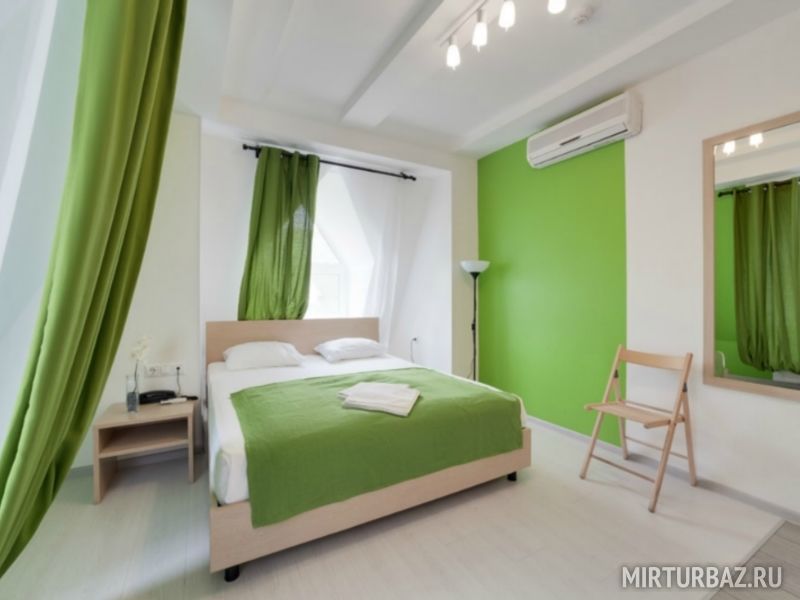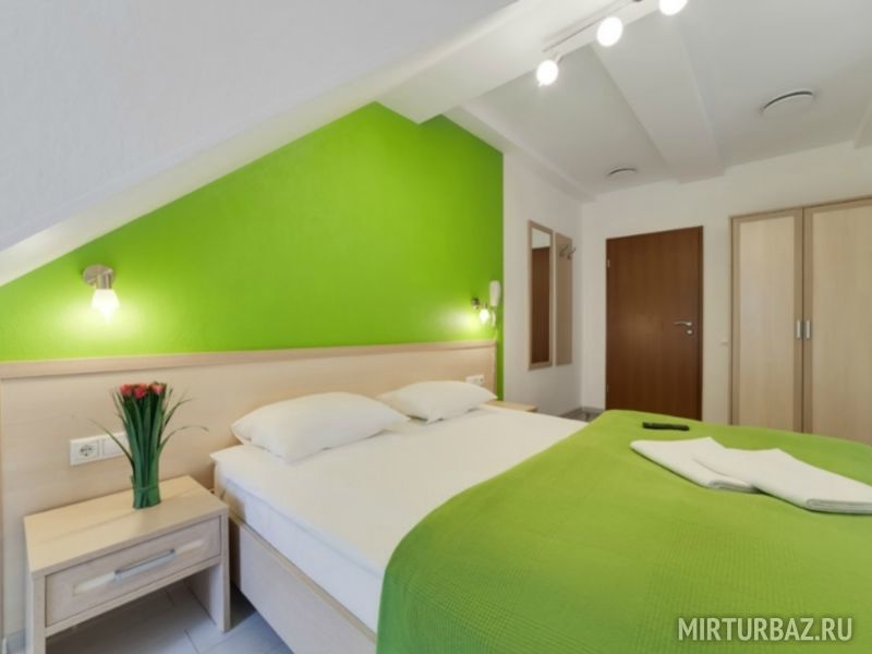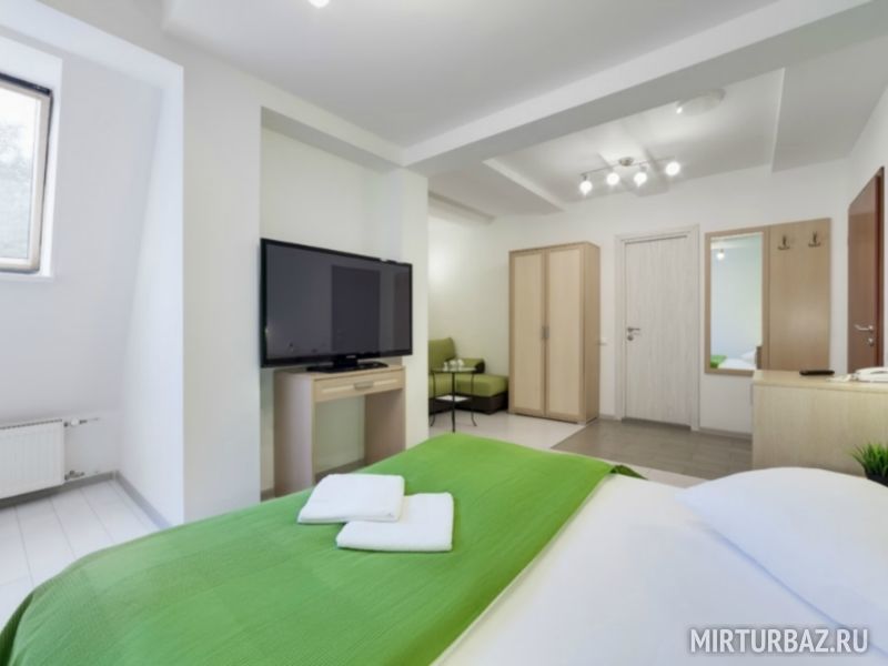 Гостиница занимает четырехэтажное здание с закрытой благоустроенной территорией. Жилой фонд представлен уютными номерами, оформленными в мягких белых, бежевых и зеленых тонах. К услугам гостей комнаты различных категорий — от стандартных до люксовых, каждая из которых полностью укомплектована современной мебелью и техникой, а также располагает собственной ванной комнатой.