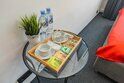 Всё чистое, без запахов. На столике рядом с чайником стояли два блюдца, две чашки и два стакана, также бутылочка с водой, 6 пакетиков чая по два вида, несколько пакетиков кофе, сахар, возможно еще что-то упустила