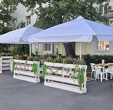 Отель «Moscow Holiday» приглашает гостей насладиться летними вечерами на открытых верандах. Здесь можно отведать изысканные блюда летнего меню: окрошку на квасе или кефире, освежающий суп «Гаспачо», разнообразные салаты с овощами и морепродуктами, а также закуски и десерты, такие как нежный чизкейк и прохладное мороженое.