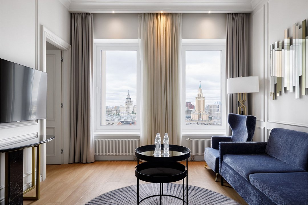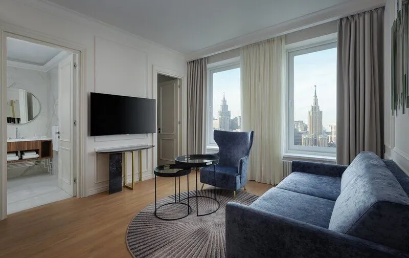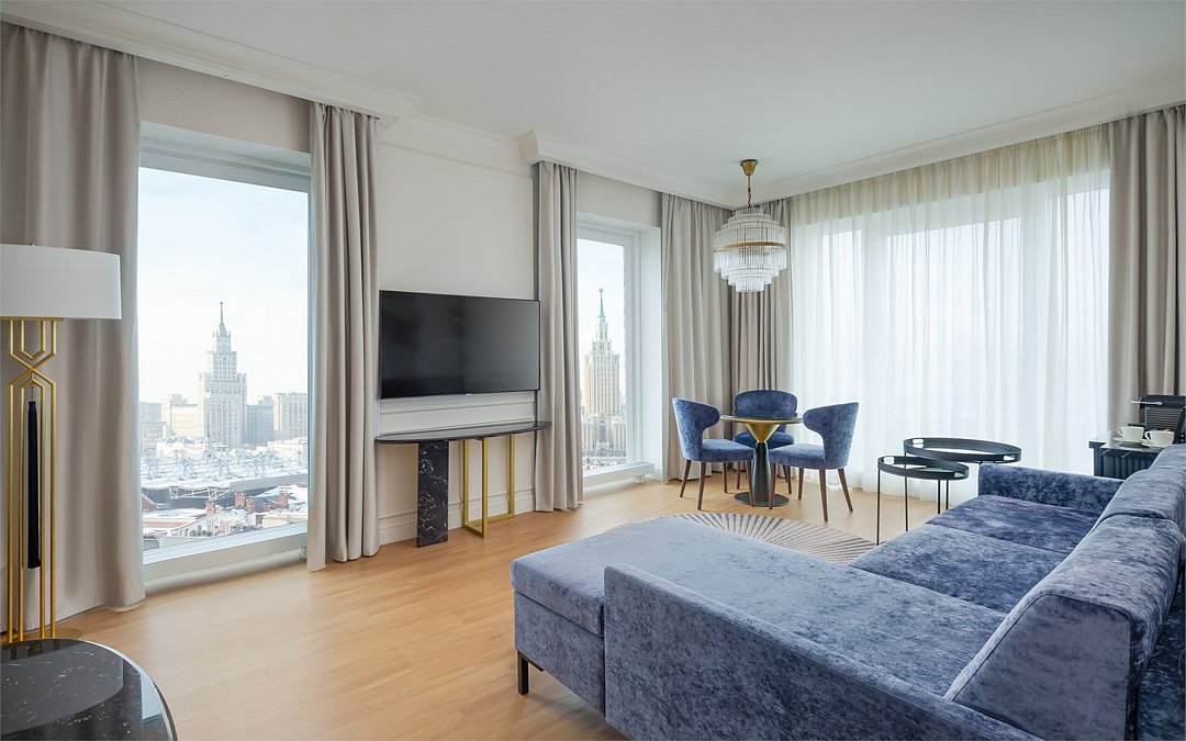 Откройте для себя мир изысканного комфорта в нашем Представительском номере, где каждая деталь создана для вашего максимального удовольствия. Этот просторный номер включает отдельную спальню и гостиную, позволяя вам наслаждаться уединением и простором. Великолепные виды на знаменитые Сталинские высотки, открывающиеся из окон, придают особую атмосферу вашему пребыванию. В спальне вас ждет роскошная кровать (180х200) с мягким изголовьем и прикроватным освещением, создающим уютную обстановку для отдыха и релаксации. Гостиная, оснащенная удобным раскладным диваном, журнальным зеркальным столиком и капсульной кофе-машиной, станет идеальным местом для общения или работы. В ванной комнате вы найдете теплый пол и тропический душ, а также косметические принадлежности премиум-класса. Индивидуальная система кондиционирования позволяет поддерживать идеальную температуру в любое время года, обеспечивая комфорт в любых погодных условиях. Для вашего удобства предусмотрен комод с набором чая и кофе и капсульная кофе-машина. За изысканными реечными дверцами комода скрывается мини-бар с тщательно подобранной коллекцией напитков, доступных для дополнительной покупки. Также Вы сможете воспользоваться услугами фитнес-центра и бесплатным WI-FI. Обратите внимание, что фотосессия в общественных зонах отеля предоставляется за дополнительную плату. Для уточнения деталей, пожалуйста, свяжитесь с отелем.Услуги и удобства