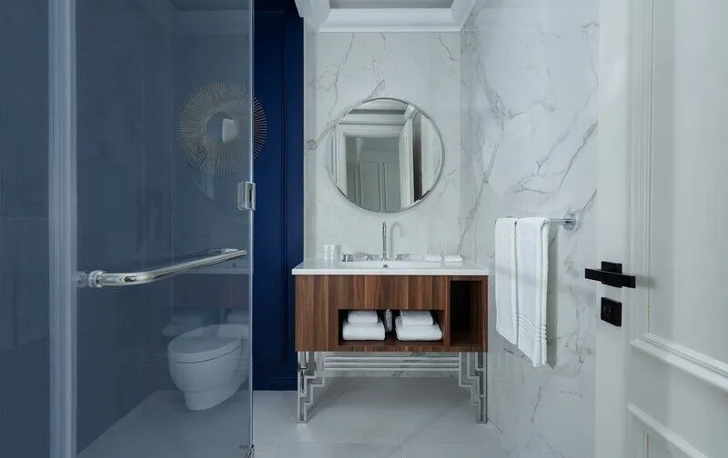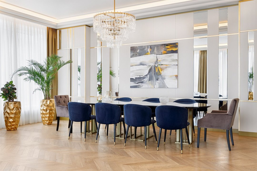 Добро пожаловать в Президентский номер – воплощение королевской роскоши и утончённого стиля, созданное для тех, кто ценит высочайший уровень комфорта и изысканности. Этот номер станет вашим личным оазисом, где каждая деталь продумана до мелочей. В вашем распоряжении две величественные спальни с роскошными кроватями размера (180х200), обеспечивающими непревзойдённый комфорт и отдых. Просыпайтесь с ощущением свежести и бодрости, готовыми к новым свершениям. Насладитесь релаксацией в просторной ванной комнате с панорамным видом на город. Эта уникальная деталь добавит волшебства в ваши ежедневные ритуалы ухода за собой. Пригласите друзей или коллег на ужин в элегантной гостиной, где мраморный стол рассчитан на 10 персон. Здесь вы сможете провести незабываемые вечера в атмосфере роскоши и уюта. Украшенные рукописными картинами стены придают пространству особую изысканность и шарм. Для вашего удовольствия и удобства в номере установлена аудиосистема, обеспечивающая высококачественное звучание и доступ к любимой музыке. Просторный гардероб позволит вам удобно разместить все свои вещи, а специально оборудованная рабочая зона создаст идеальные условия для продуктивной работы в любое время дня. Также Вы сможете воспользоваться услугами фитнес-центра и бесплатным WI-FI. Обратите внимание, что фотосессия в общественных зонах отеля предоставляется за дополнительную плату. Для уточнения деталей, пожалуйста, свяжитесь с отелем.Услуги и удобства