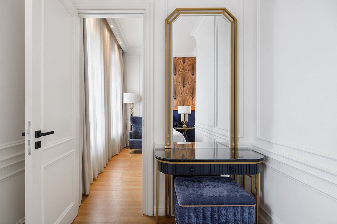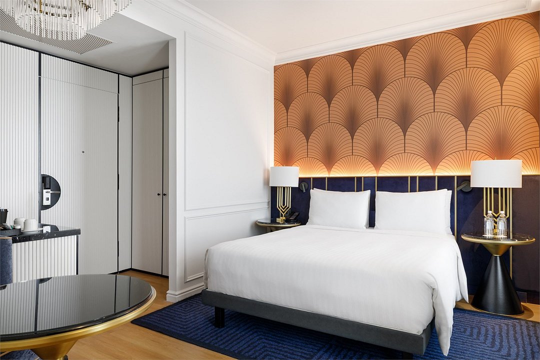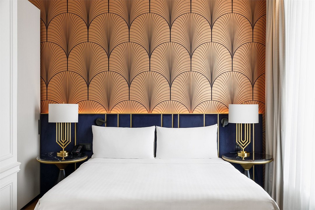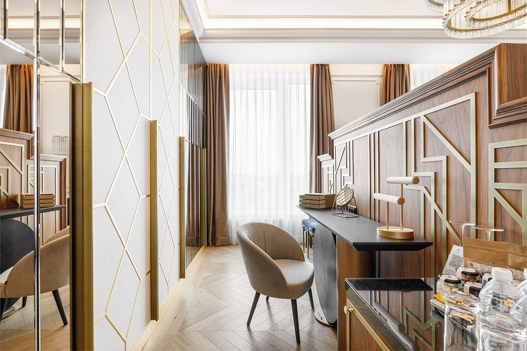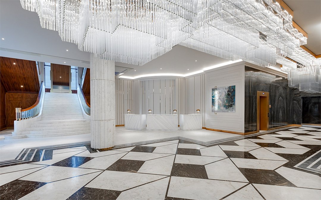 Благодаря элегантному интерьеру, выполненному в стиле арт-деко, отель по праву можно назвать уникальной находкой для приверженцев классики в ее современном прочтении. Геометрические орнаменты, глянцевые текстуры, лепнина, хрусталь и мрамор создают атмосферу роскоши и изящества. Центральным элементом отеля является величественная мраморная лестница, ведущая в банкетный зал Imperial Plaza. Зал, в свою очередь, предстает во всем своем великолепии: хрустальные итальянские люстры, витражи, высокие потолки и зеркала.