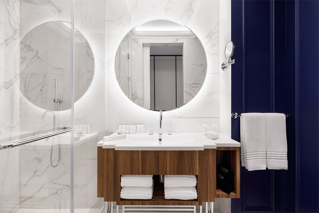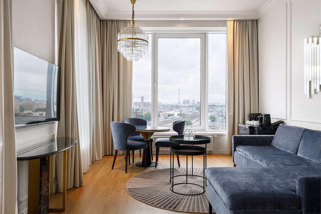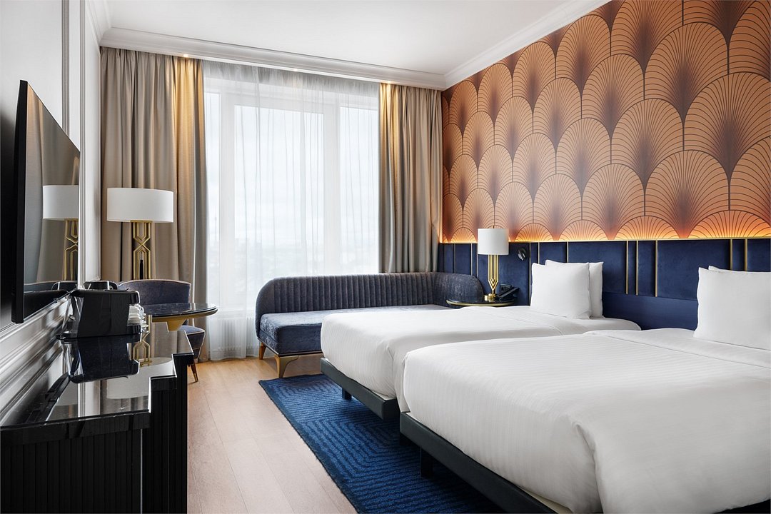 Наши Премиум номера, расположенные на верхних этажах отеля, предлагают вам захватывающие виды на Москву через панорамные окна номера. Это идеальный выбор для тех, кто ценит наивысшую степень уединения и удобства. В номере расположены две раздельные кровати с мягким изголовьем и прикроватным освещением, создающим уютную атмосферу для чтения или расслабления перед сном. Почувствуйте настоящую роскошь теплого пола с индивидуальной системой управления и насладитесь тропическим душем с косметическими принадлежностями премиум-класса. Индивидуальная система кондиционирования позволяет поддерживать идеальную температуру в любое время года, обеспечивая комфорт в любых погодных условиях. В номере также представлен комфортабельный диван, элегантный столик с мраморной поверхностью и дизайнерское кресло, создающие идеальные условия как для отдыха, так и для работы. Для вашего удобства предусмотрен комод с набором чая и кофе и капсульная кофе-машина. За изысканными реечными дверцами комода скрывается мини-бар с тщательно подобранной коллекцией напитков, доступных для дополнительной покупки. Также Вы сможете воспользоваться услугами фитнес-центра и бесплатным WI-FI. Обратите внимание, что фотосессия в общественных зонах отеля предоставляется за дополнительную плату. Для уточнения деталей, пожалуйста, свяжитесь с отелем.Услуги и удобства
