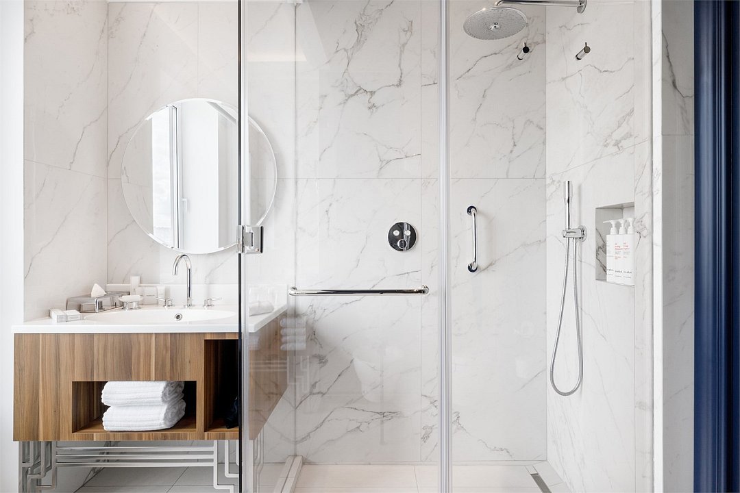 Наслаждайтесь отдыхом на удобной кровати (160x200) с мягким изголовьем и прикроватным освещением. Индивидуальная система кондиционирования для поддержания идеальной температуры в любое время года. Превосходная ванная комната с системой теплого пола индивидуального управления, душевой кабиной и косметическими принадлежностями. В номере для вашего удобства столик с мраморной поверхностью и дизайнерское кресло, которые создают идеальные условия для отдыха и работы. Комод с чаем и кофе, которые можно приготовить самостоятельно. За реечными дверцами комода скрывается мини-бар с коллекцией напитков, которые можно дополнительно приобрести. Также Вы сможете воспользоваться услугами фитнес-центра и бесплатным WI-FI. Обратите внимание, что фотосессия в общественных зонах отеля предоставляется за дополнительную плату. Для уточнения деталей, пожалуйста, свяжитесь с отелем.Услуги и удобства