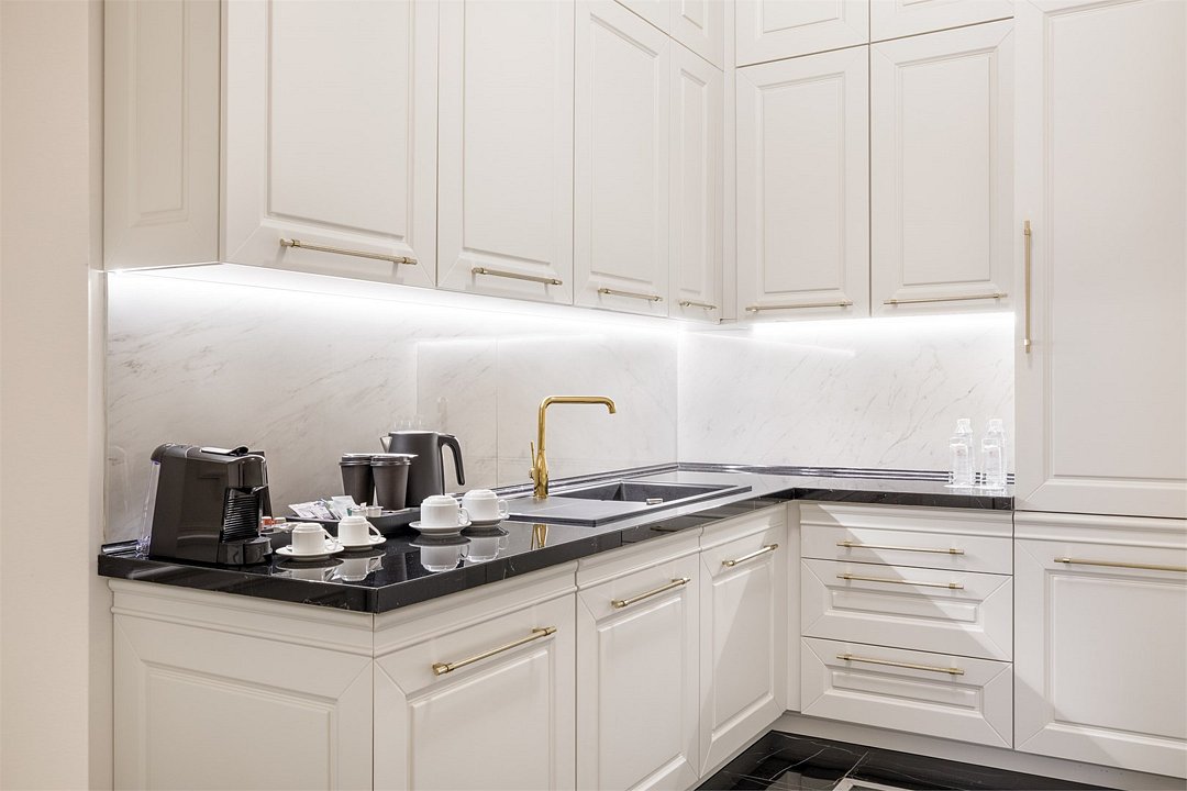 Большая и просторная кровать (180x200) с мягким изголовьем с прикроватным освещением создают идеальную атмосферу для чтения или расслабления перед сном. Ощутите роскошь теплого пола с индивидуальной системой управления, расслабьтесь под тропическим душем и побалуйте себя косметическими принадлежностями премиум-класса. Индивидуальная система кондиционирования для поддержания идеальной температуры в любое время года. Комфортабельный диван, столик с мраморной поверхностью и дизайнерское кресло создают идеальные условия как для отдыха, так и для работы. В вашем распоряжении комод с чаем и кофе, которые можно приготовить самостоятельно. За элегантными реечными дверцами комода скрывается мини-бар с коллекцией напитков, доступных для дополнительной покупки. Также Вы сможете воспользоваться услугами фитнес-центра и бесплатным WI-FI. Обратите внимание, что фотосессия в общественных зонах отеля предоставляется за дополнительную плату. Для уточнения деталей, пожалуйста, свяжитесь с отелем.Услуги и удобства