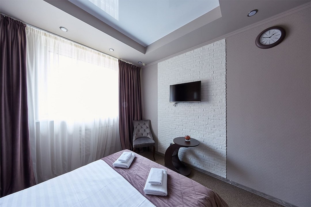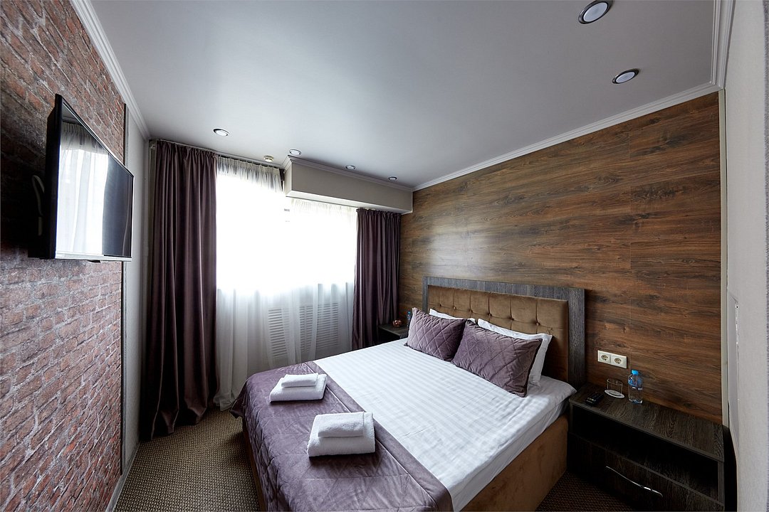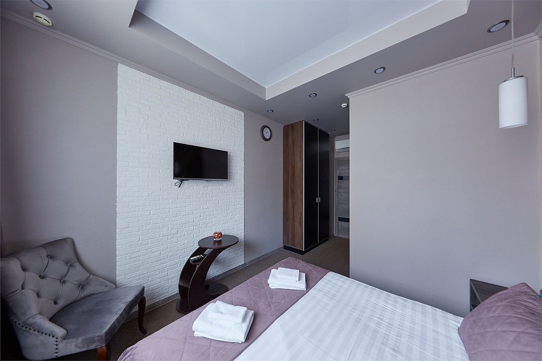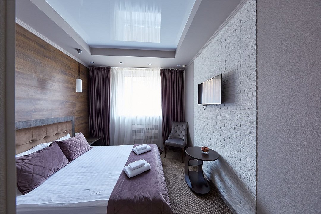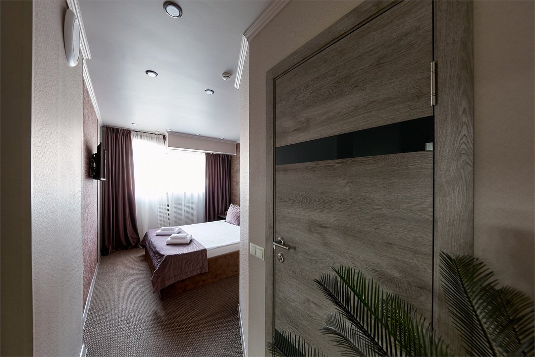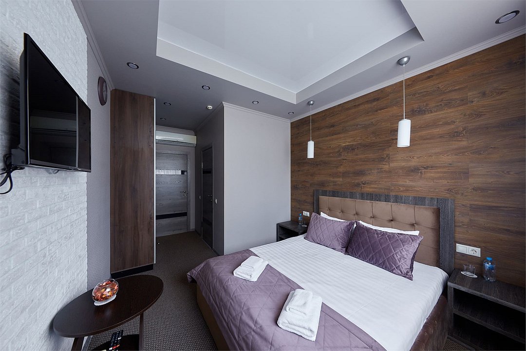 Однокомнатный номер площадью 16 м², сочетает в себе современный стиль и повышенный комфорт. Двухместный номер рассчитан на проживания не более двух человек. Собственная ванная комнатаУслуги и удобства