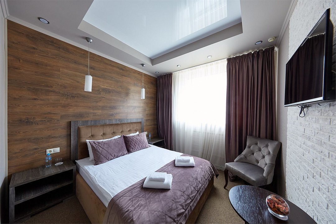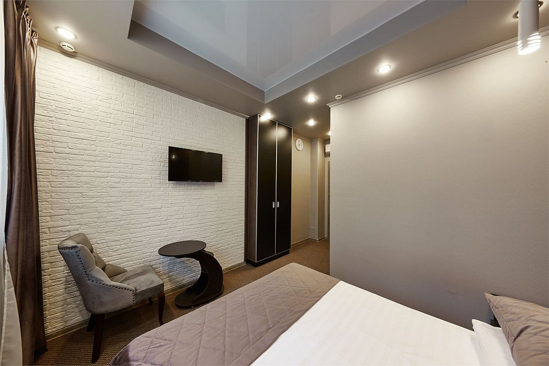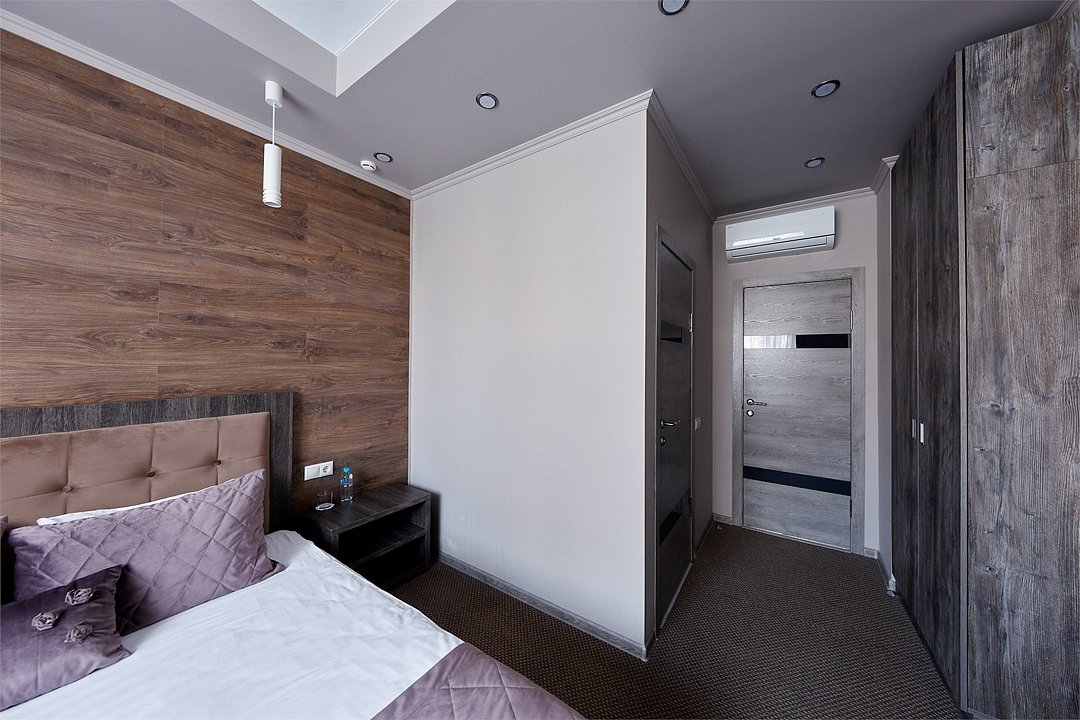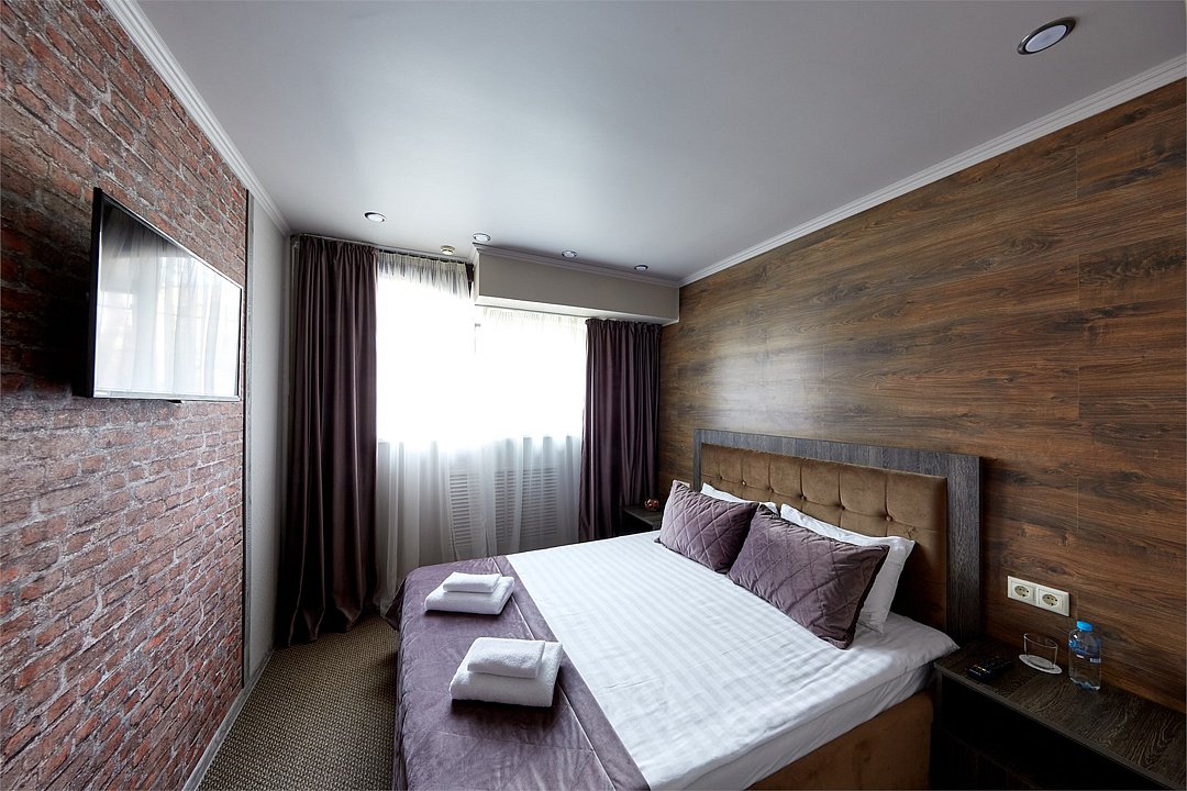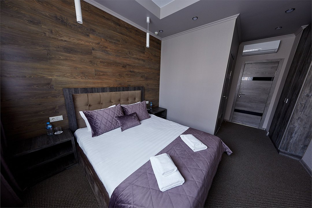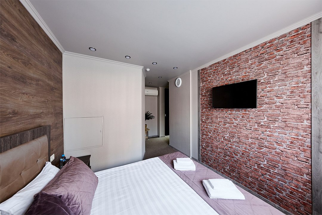 Однокомнатный номер площадью 16 м², сочетает в себе современный стиль и повышенный комфорт. Двухместный номер рассчитан на проживания не более двух человек. Собственная ванная комнатаУслуги и удобства