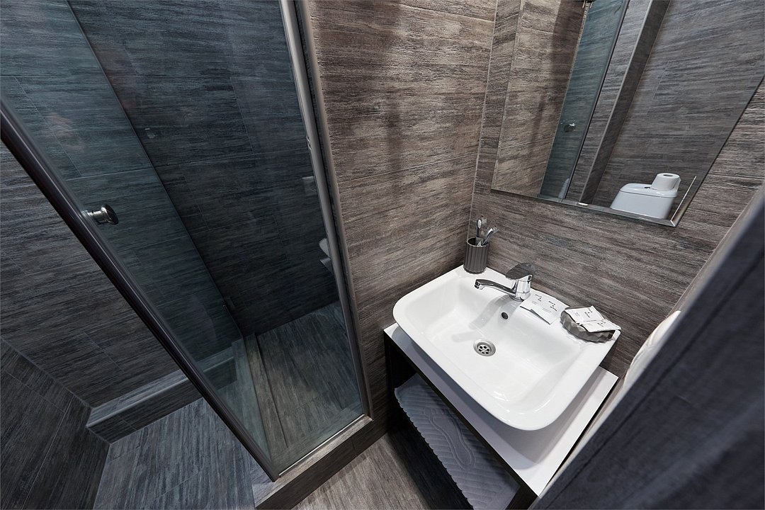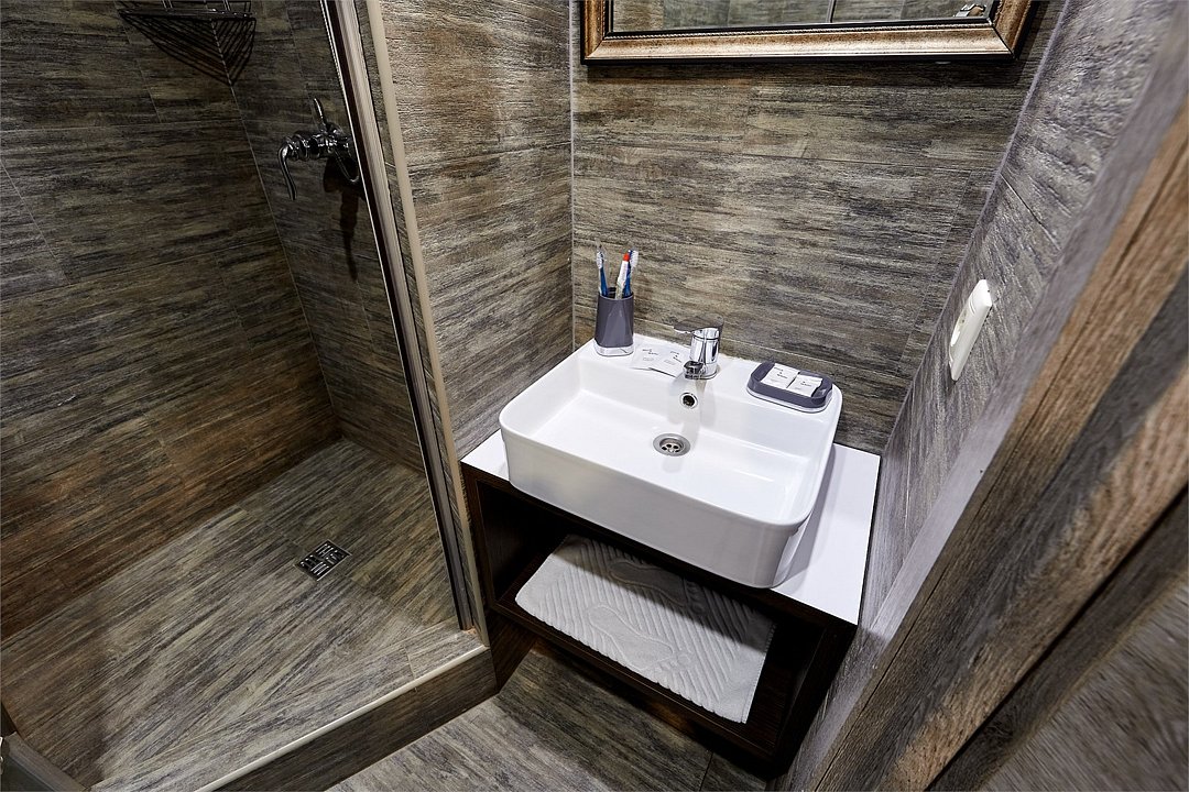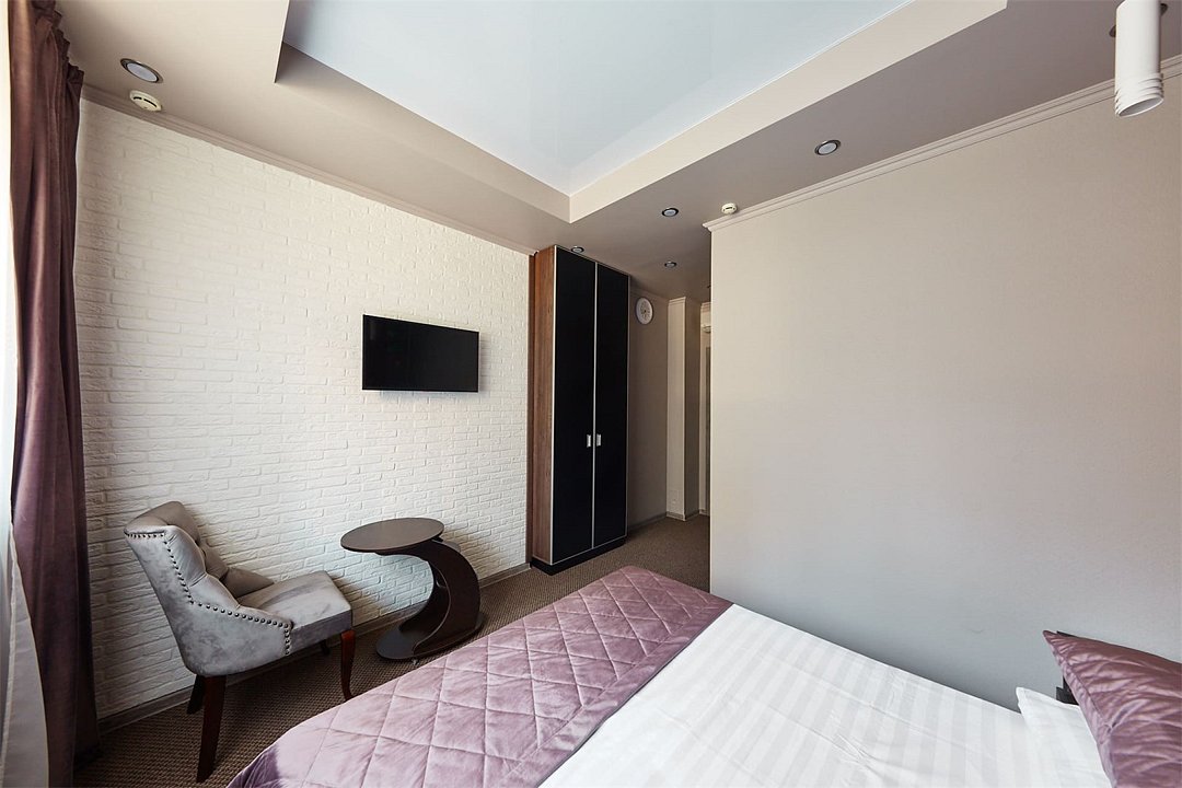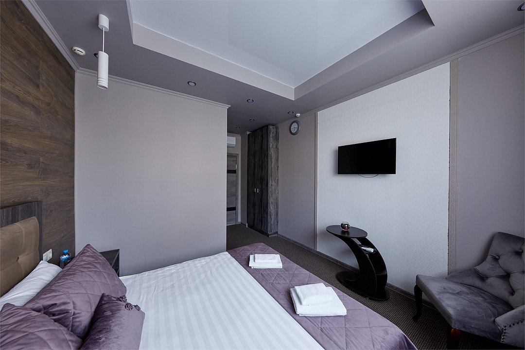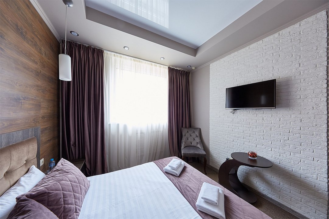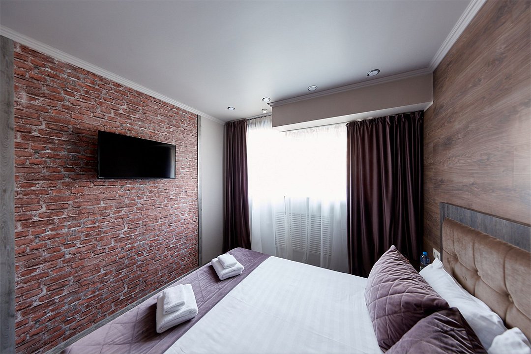 Однокомнатный номер площадью 16 м², сочетает в себе современный стиль и повышенный комфорт. Двухместный номер рассчитан на проживания не более двух человек. Собственная ванная комнатаУслуги и удобства