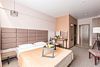 телевизор, Wi-Fi, кондиционер, система безопасности, электронные замки, санузел, банные полотенца, тапочки, гигиенические средства, кровать «Queen size», гладильная доска, тумбы, гардеробная, вешалки, обеденный стол, багажная тумба, зеркало, пуфики, звуконепроницаемые стены и окна, мини-бар, чайный набор, набор посуды, обслуживание номеров, чайник, унитаз, раковина, мягкая мебель, обеденная зона, ковровое покрытие, отопление, душ, вид на город, кулер на этаже, высокие потолки, стаканы, кухонная утварь, столовые приборы, тумба, туалетные средства, туалет, цифровое тв, телевизор с плоским экраном, мини-холодильник, пуфик, рабочий столВ гостиничном номере
