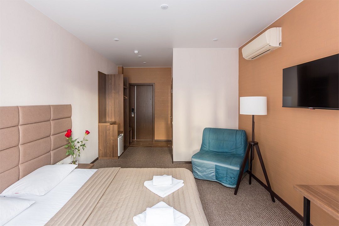 Улучшенный двухместный номер с 2 односпальными кроватями или одной двуспальной. Номер оснащен кондиционером, мини-холодильником. В каждом номере нашего отеля предусмотрена ванная комната.Услуги и удобства
