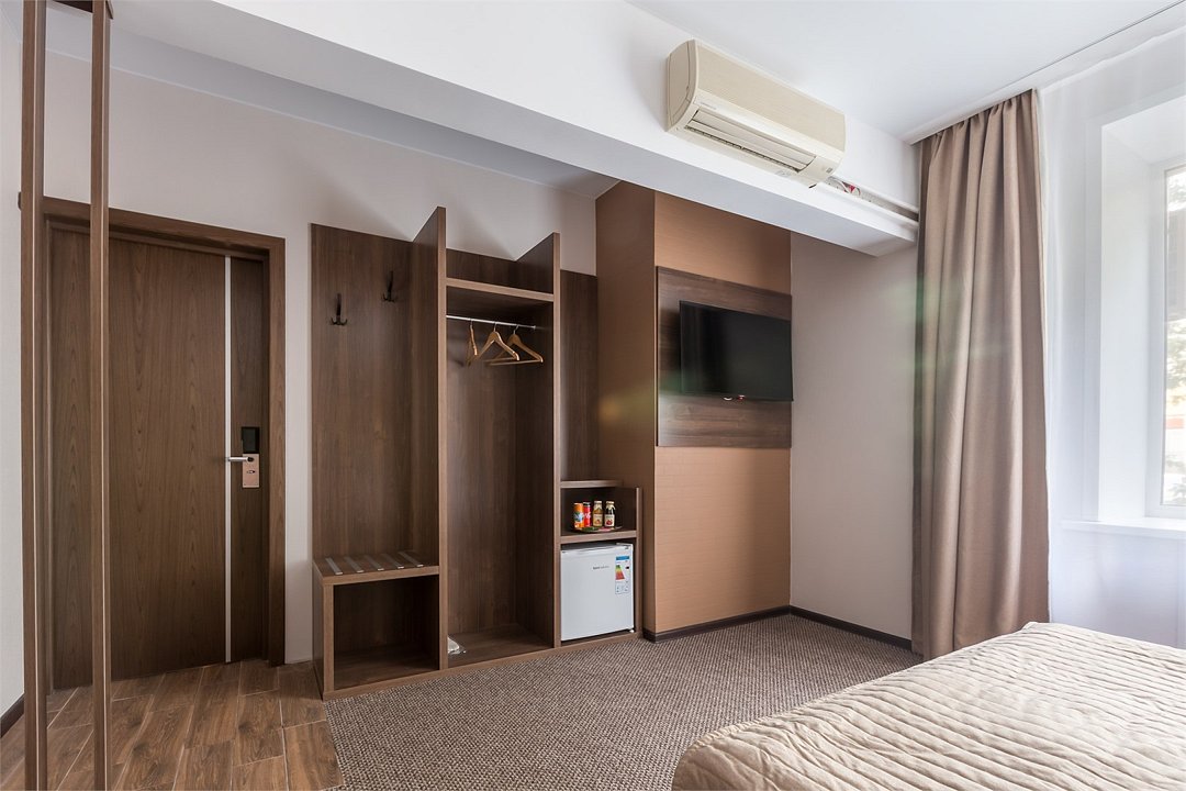 телевизор, Wi-Fi, интернет, холодильник, кондиционер, кулер, фен, электронные замки, утюг, ванная комната, ванна или душевая кабина, банные принадлежности, тапочки, косметические средства, кровать «Queen size», гладильная доска, тумбы, вешалки, письменный стол, обеденный стол, багажная тумба, зеркало, пуфики, мебельный гарнитур, чайный набор, обслуживание номеров, чайник, унитаз, раковина, мягкая мебель, отопление, отдельный вход в номер, душ, кулер на этаже, вид во двор, высокие потолки, стол, тумба, туалетные средства, туалет, цифровое тв, телевизор с плоским экраном, мини-холодильник, пуфик, рабочий стол, антибактериальное средство для рукВ гостиничном номере