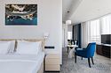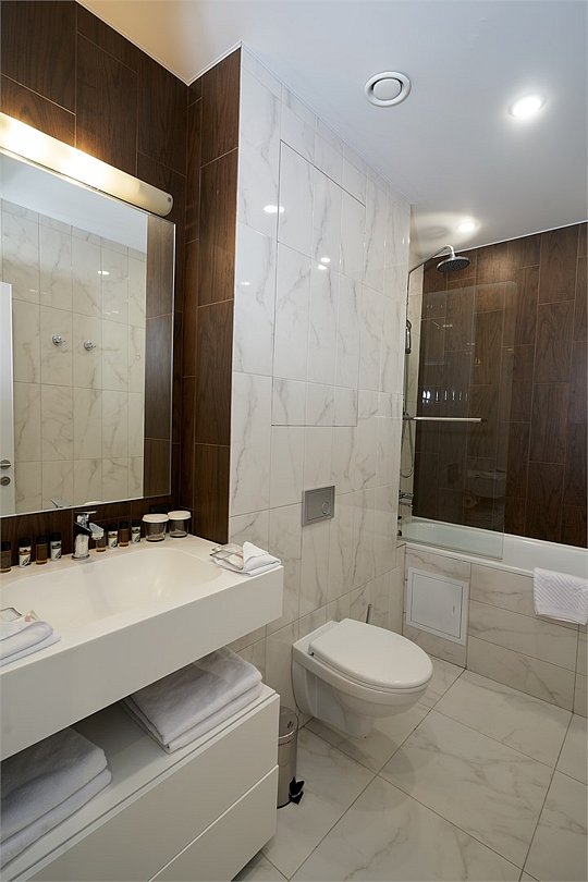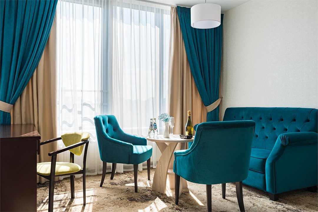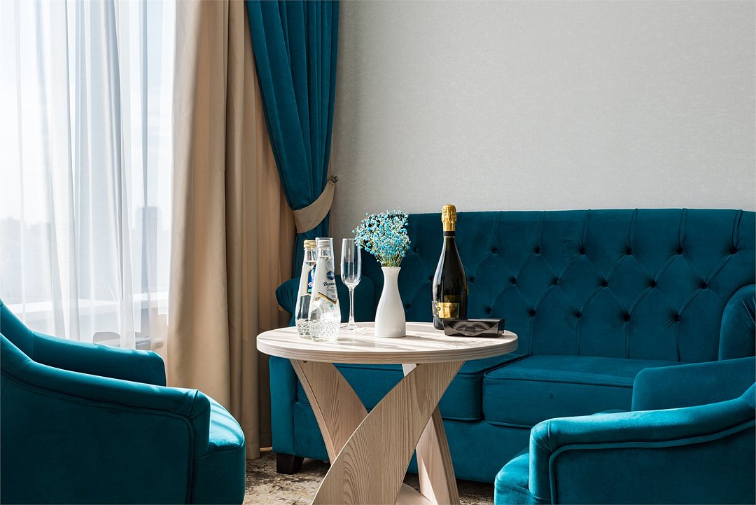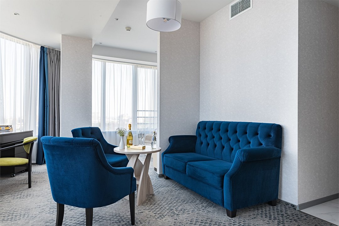 Джуниор сьют — просторный и стильный номер для комфортного размещения до двух гостей. В номере вас ждут двуспальная кровать, двуспальный диван и мини-кухня с современной техникой и посудой. Особое внимание привлекает ванная комната с полноценной ванной и окном с видом на город, которое наполняет пространство естественным светом и создаёт атмосферу лёгкости и простора. Вы можете заранее забронировать место в подземном паркинге (оплачивается отдельно). Количество мест ограничено.Услуги и удобства