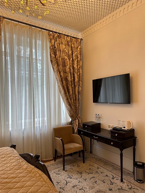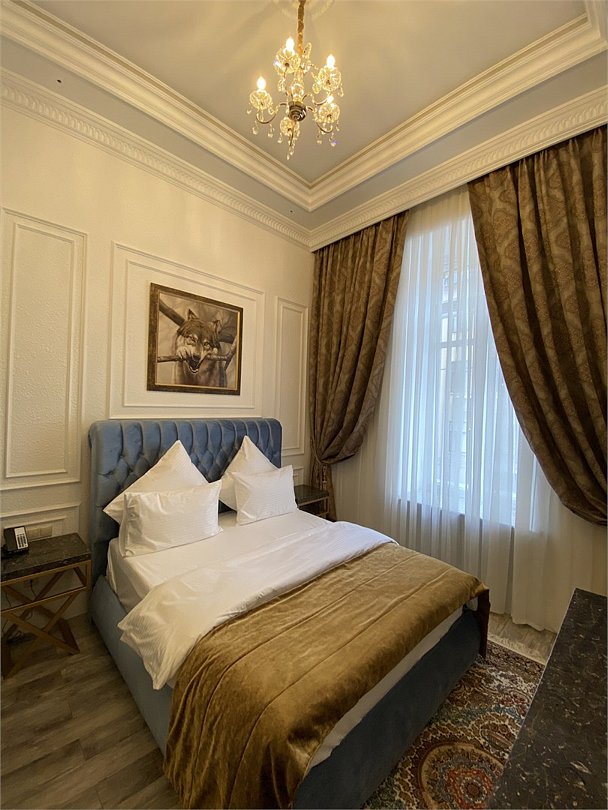 Комфортный дизайнерский номер с большой двуспальной кроватью, выполненный в классическом стиле. К услугам гостей предоставляется набор банных принадлежностей и косметических средств, спутниковое телевидение и бесплатный Wi-Fi. Номер подойдет как для туристов, так и для деловых гостей.Услуги и удобства