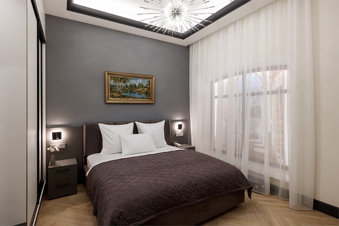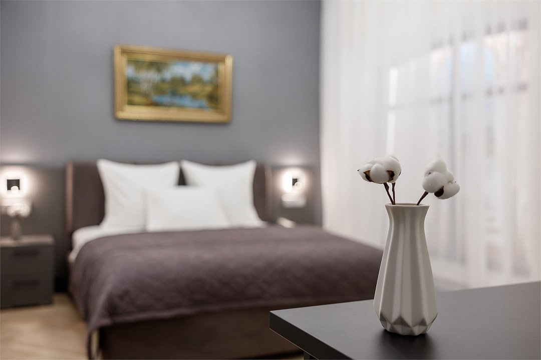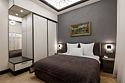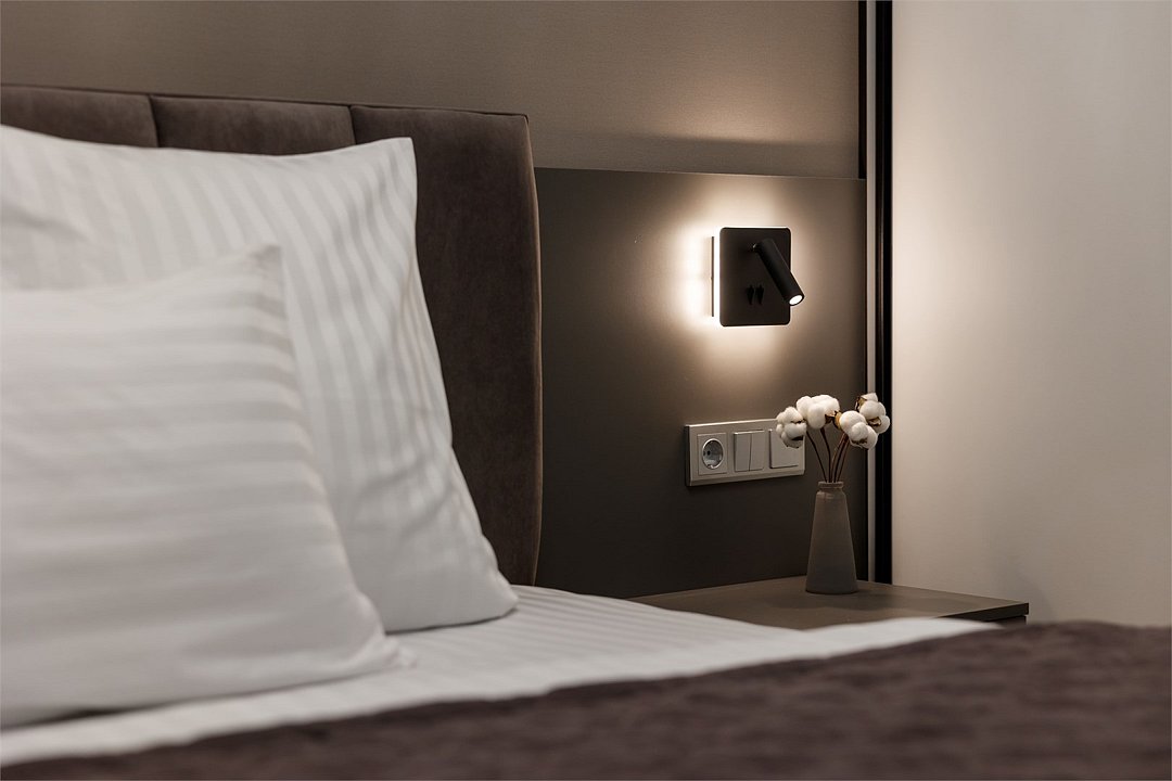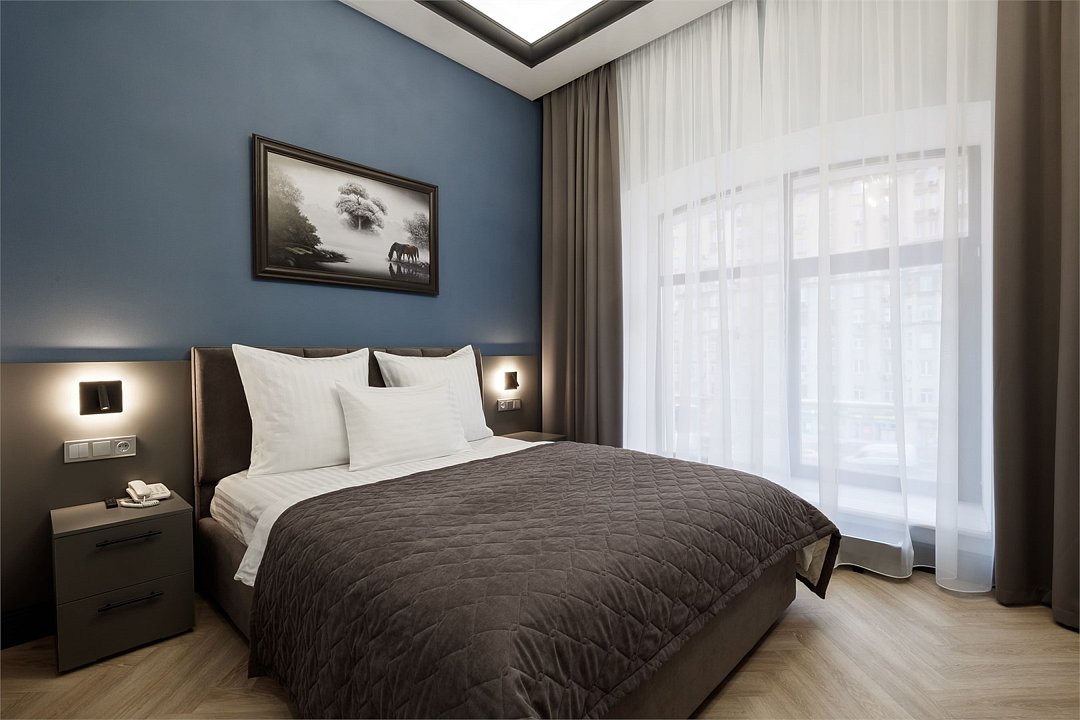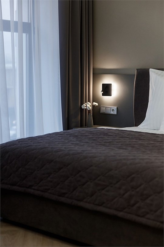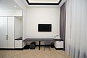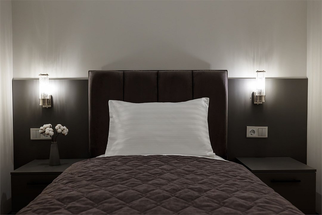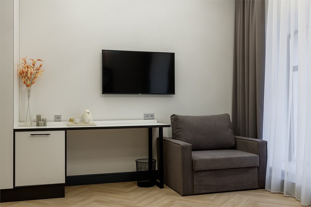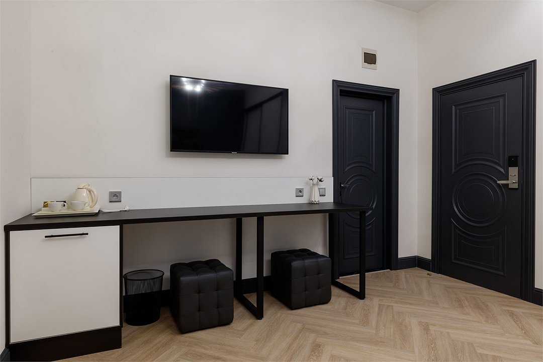 Однокомнатный просторный номер с фальш-окном (без окна), площадью 24 кв.м. В номере: двухспальная кровать, гардероб, телевизор, кондиционер, мини-холодильник, стол, стул, электрический чайник, набор посуды, ванная комната: душ, фен, полотенца, косметические принадлежности, тапочки, халат.Услуги и удобства