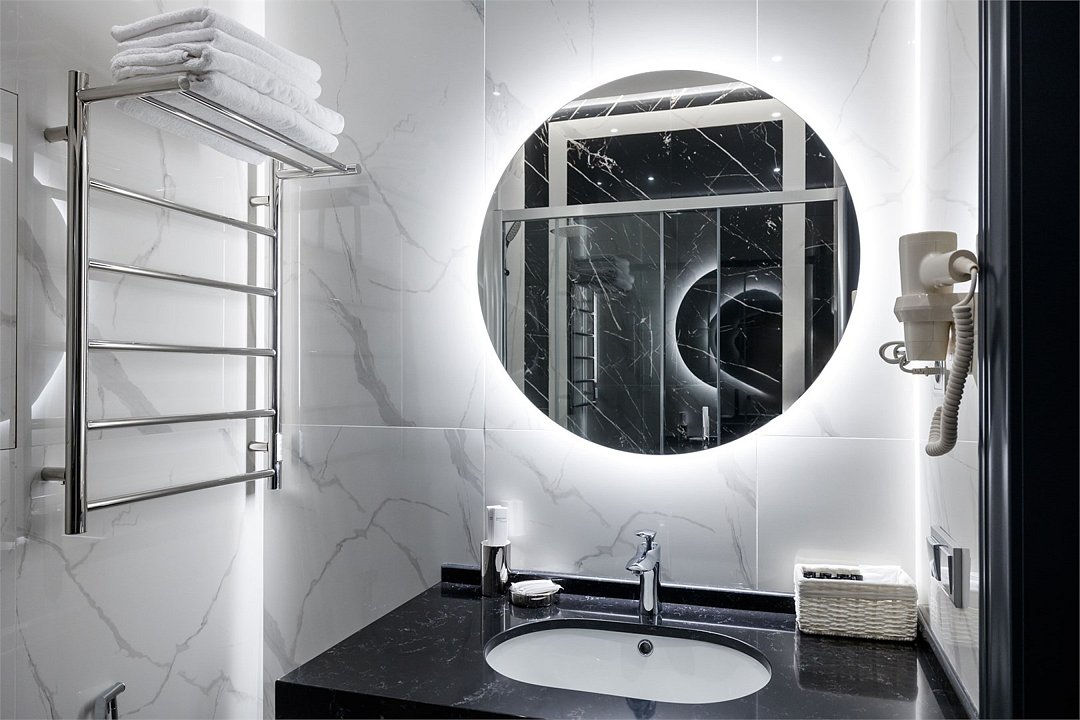 Wi-Fi, фен, система безопасности, электронные замки, ванна, санузел, теплый пол, халаты, банные полотенца, тапочки, двуспальная кровать, шкаф для одежды, гардеробная, вешалки, зеркало, комод, чайный набор, обслуживание номеров, сейф, раковина, душ, вид на город, высокие потолки, меню подушек, туалетные средства, панорамные окна, внутренний телефон, телевизор с плоским экраном, мини-холодильник, номер для некурящих, кресло-кровать, чайная станция, уборка номера, вешалки-плечики, бутилированная вода, мыло, без питомцевВ гостиничном номере