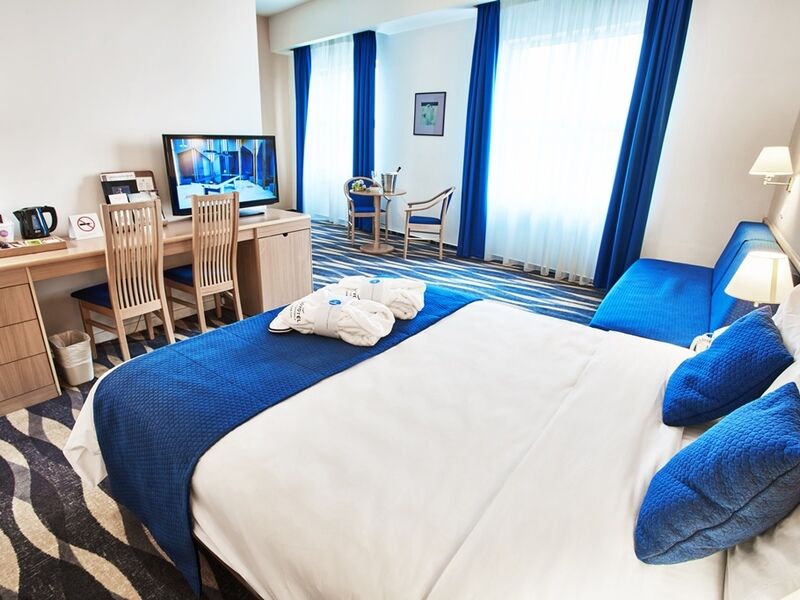 Для проведения деловых мероприятий, переговоров, встреч предусмотрены современные конференц-залы. Самый вместительный рассчитан на 160 человек, а самый небольшой - на 30.
