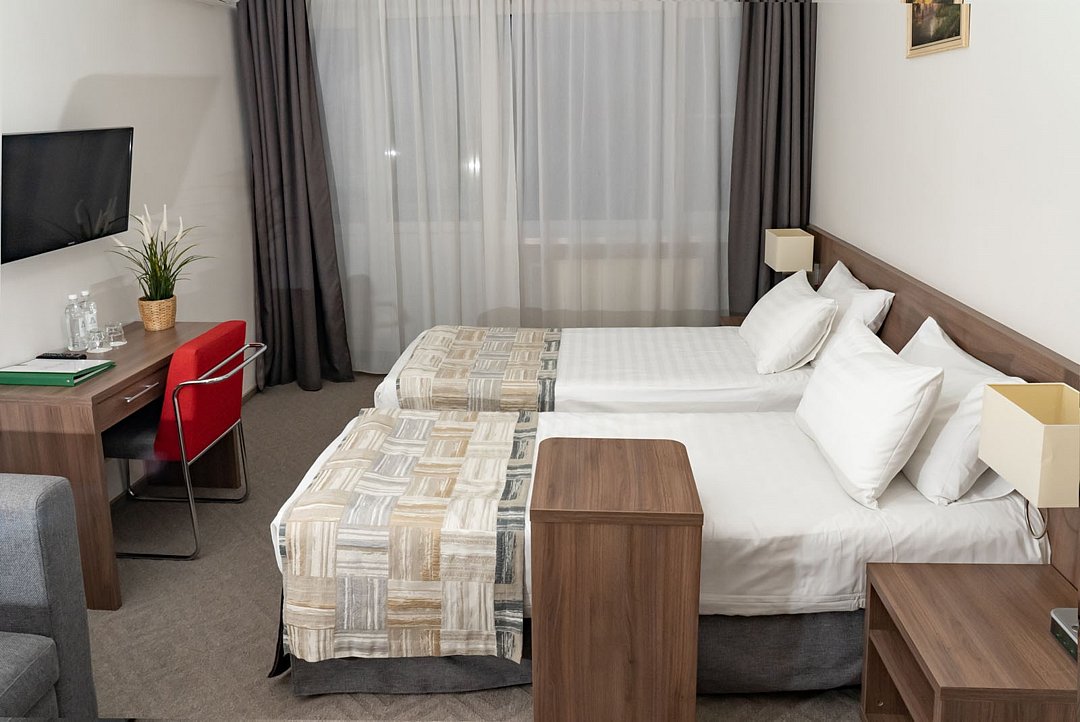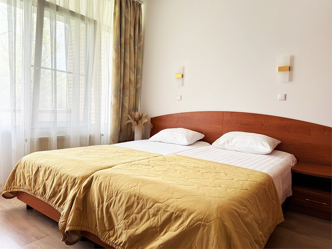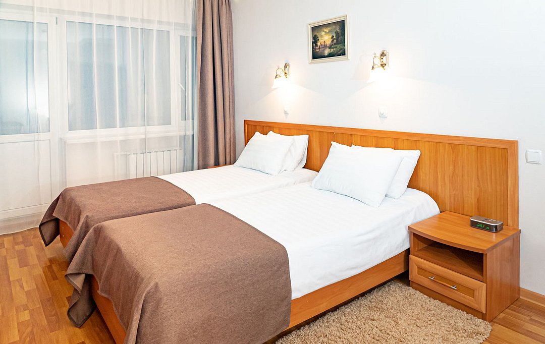Двухкомнатный двухместный номер повышенной комфортности с кондиционером. В номере две раздельные кровати 90*200, по запросу сдвигаются и объединяются топпером. Ванной комнате душевая кабина или ванная. Номера расположены в Главном корпусе.Услуги и удобства