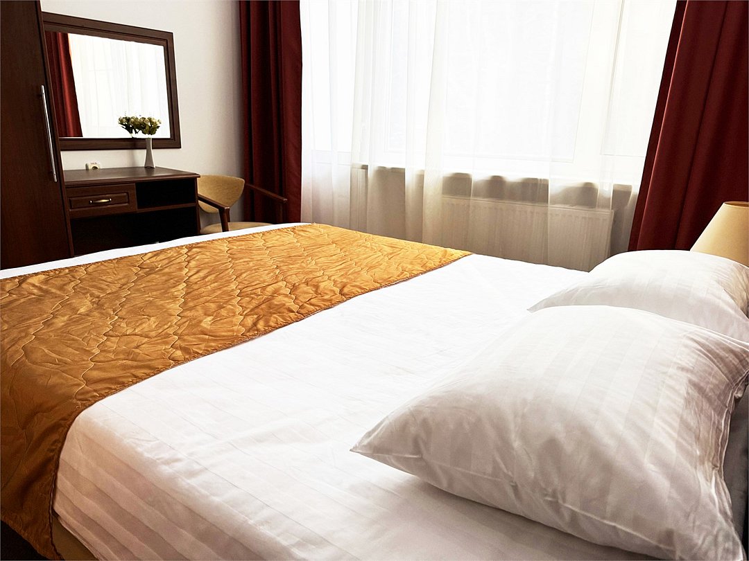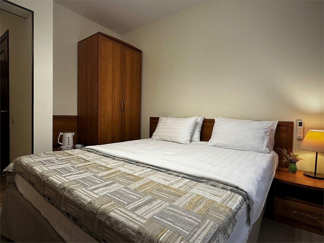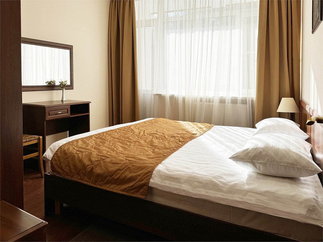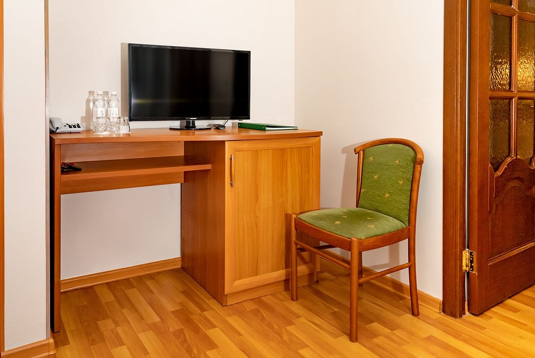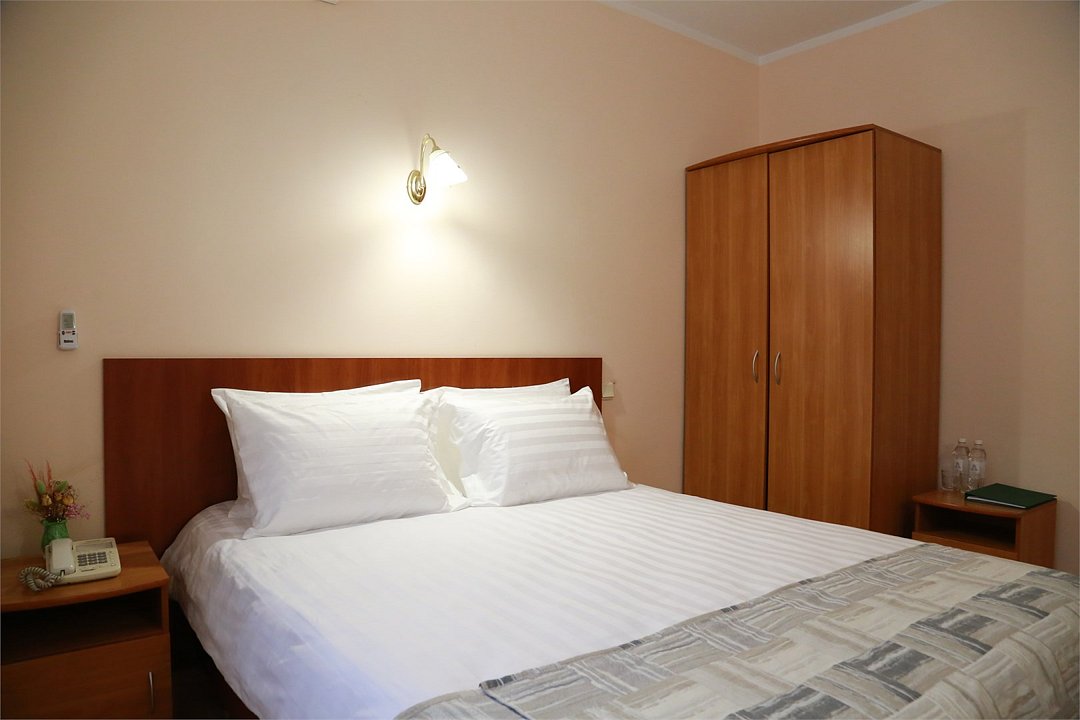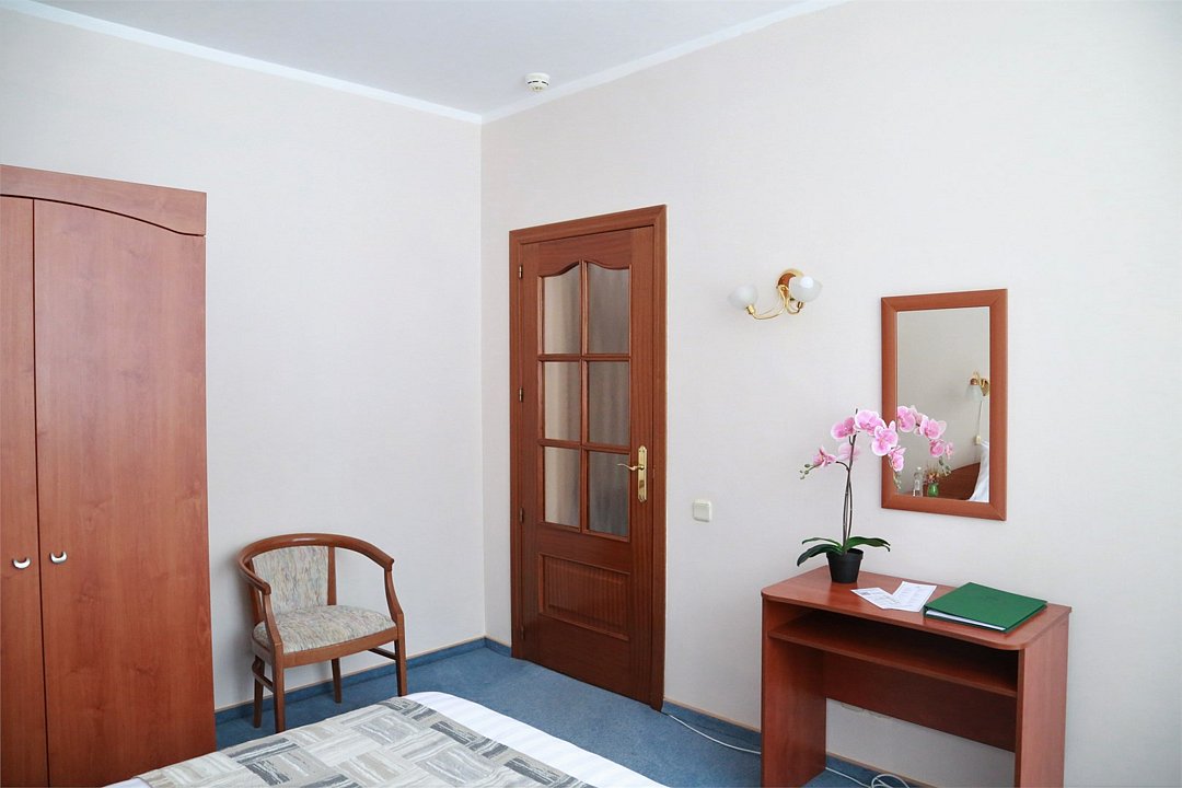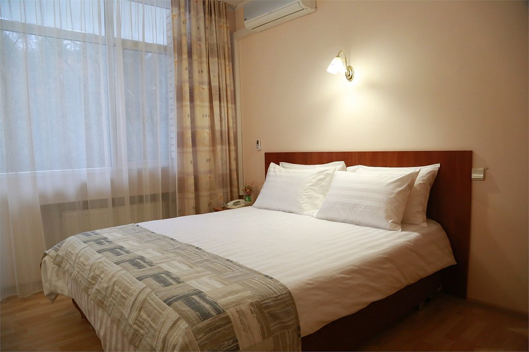 Однокомнатный двухместный номер повышенной комфортности с кондиционером и кроватью 140*200. Расположен в Главном корпусе.Услуги и удобства