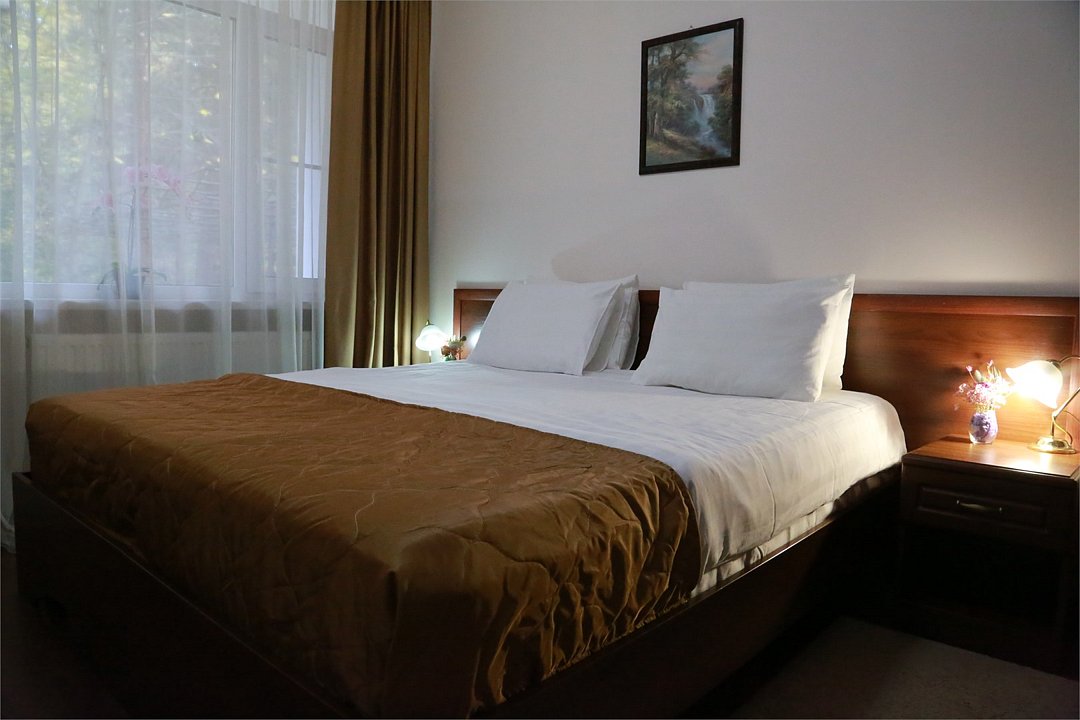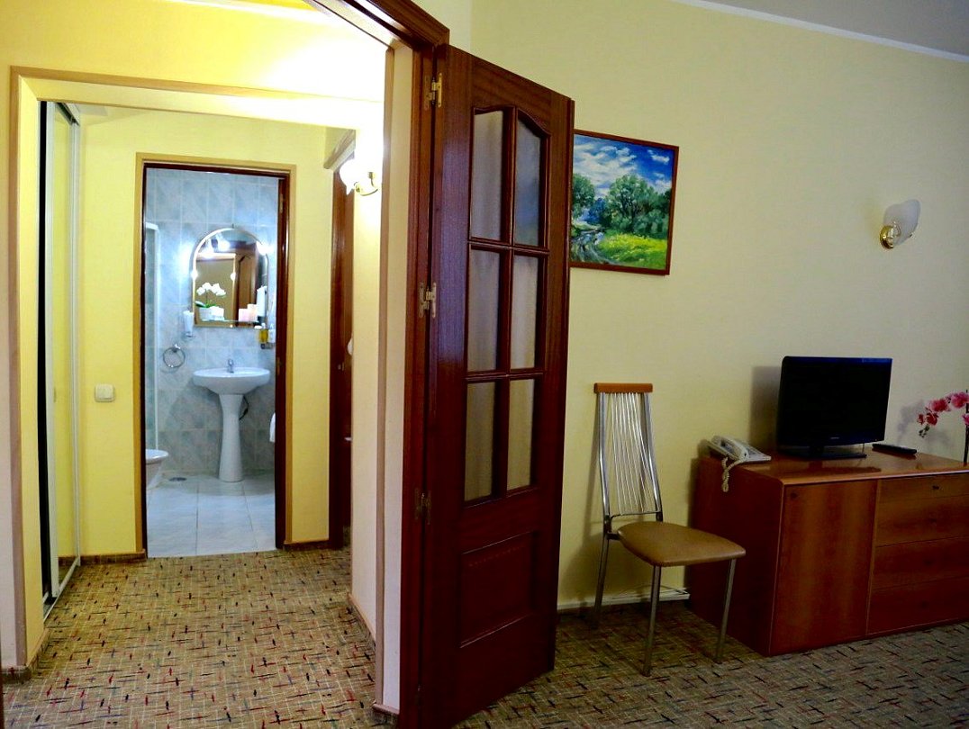 Двухкомнатный номер с кухонным уголком. В спальне на Ваш выбор одна двуспальная кровать или две односпальные кровати. В просторной гостиной - диван, который по запросу раскладывается. Номера расположены в первом корпусе "Кубань". Все номера с балконами, откуда открывается потрясающий вид на лес.Услуги и удобства