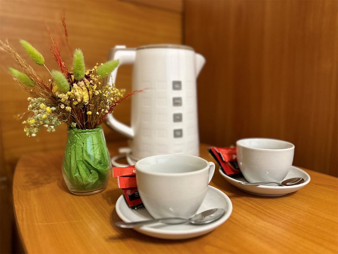телевизор, телефон, кондиционер, светильник, настольные лампы, фен, будильник, система безопасности, электронные замки, ванная комната, душевая кабина, банные полотенца, гигиенические средства, косметические средства, две односпальные кровати, тумбы, шкаф для одежды, вешалки, багажная тумба, зеркало, чайный набор, чайник, унитаз, раковина, душ, вид на сад, кулер на этаже, туалетные средства, мини-холодильникВ гостиничном номере