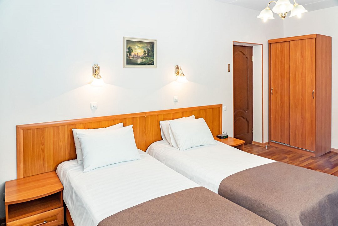 Однокомнатный двухместный номер, две раздельные кровати 90*200, душевая кабина. Номера расположены в Главном корпусе.Услуги и удобства