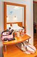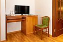 телевизор, телефон, холодильник, кондиционер, светильник, настольные лампы, фен, система безопасности, электронные замки, ванная комната, банные полотенца, гигиенические средства, косметические средства, односпальная кровать, тумбы, шкаф для одежды, вешалки, багажная тумба, зеркало, чайный набор, чайник, унитаз, раковина, отопление, душ, вид на сад, стол, туалетный столик, туалетные средстваВ гостиничном номере