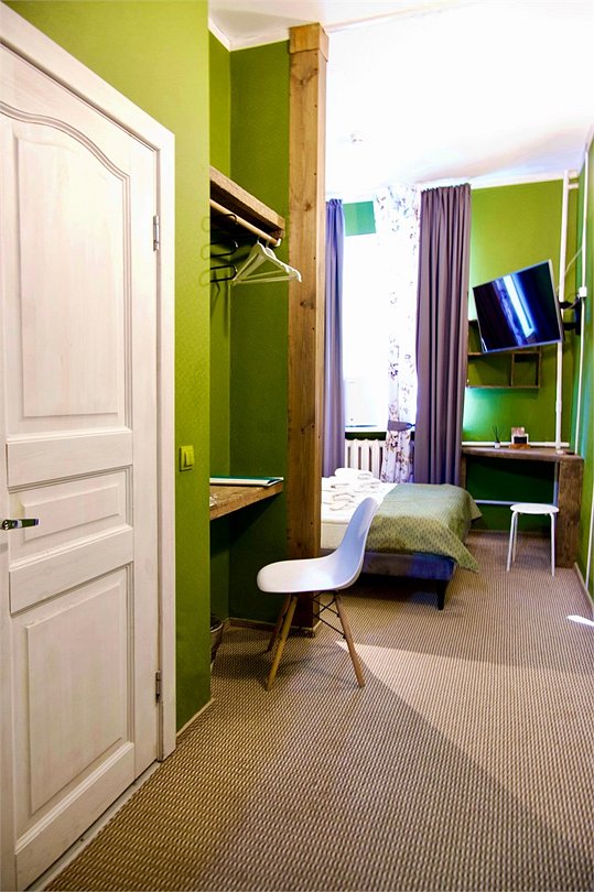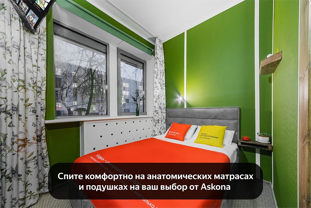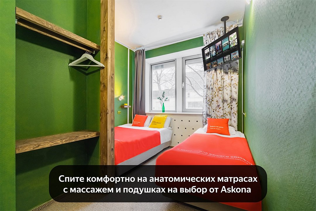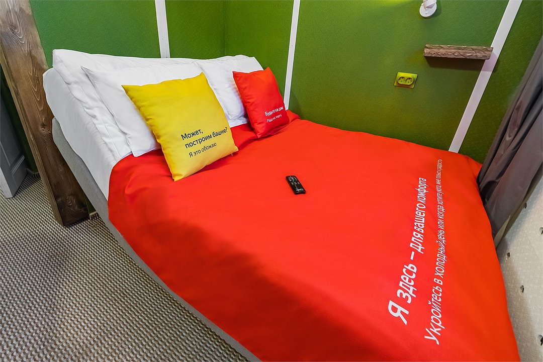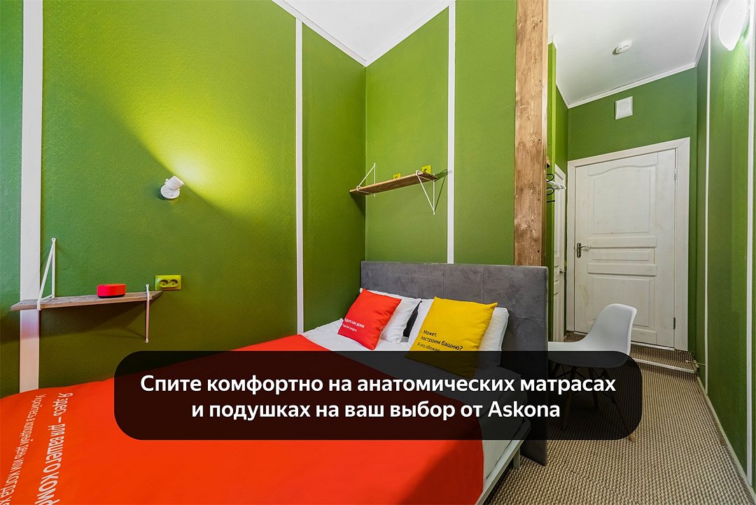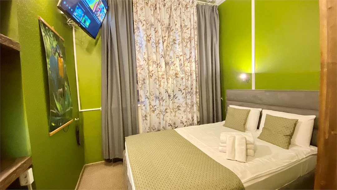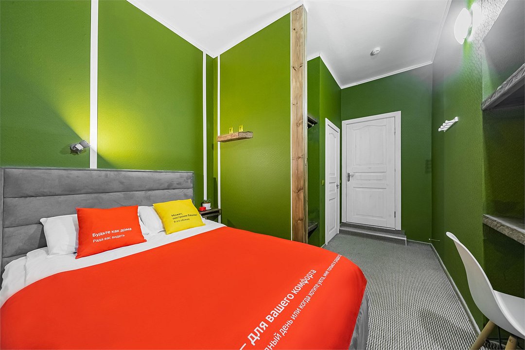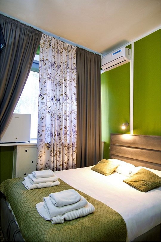 Уникальное предложение для путешествующих с большим количеством багажа, ручной клади или вещей. В номере одна большая двуспальная кровать с подъемным механизмом, мягким изголовьем и боковыми частями. Уникальность подъемного механизма состоит в том, что он обеспечивает беспрепятственный доступ к пространству под основанием кровати, открывая просторную и высокую нишу для хранения вещей. Кровать с анатомическими подушками. Окно с широким подоконником защищено светонепроницаемыми шторами. Для вашего удобства в номере установлен небольшой письменный стол со стулом, небольшая открытая гардеробная с вешалками, телевизор с плоским экраном 43 дюйма с разрешением HD: 4K UHD и Станция «Алиса». Комфортное пространство для сна. Ванная комната оснащена всем необходимым оборудованием для личной гигиены со всеми необходимыми принадлежностями: большое зеркало с подсветкой, полочка для мелких вещей, фен, халат, тапочки, полотенца, мыло и шампунь. Спите и отдыхайте на здоровье! В Отеле имеется кофейня «Олива», которая специализируется в профессиональном приготовлении кофе и свежей выпечки. В кофейне можно заранее заказать завтрак. Подача завтрака с 09:00 до 11:00. Кофейня работает с 09:00 до 23:00.Услуги и удобства
