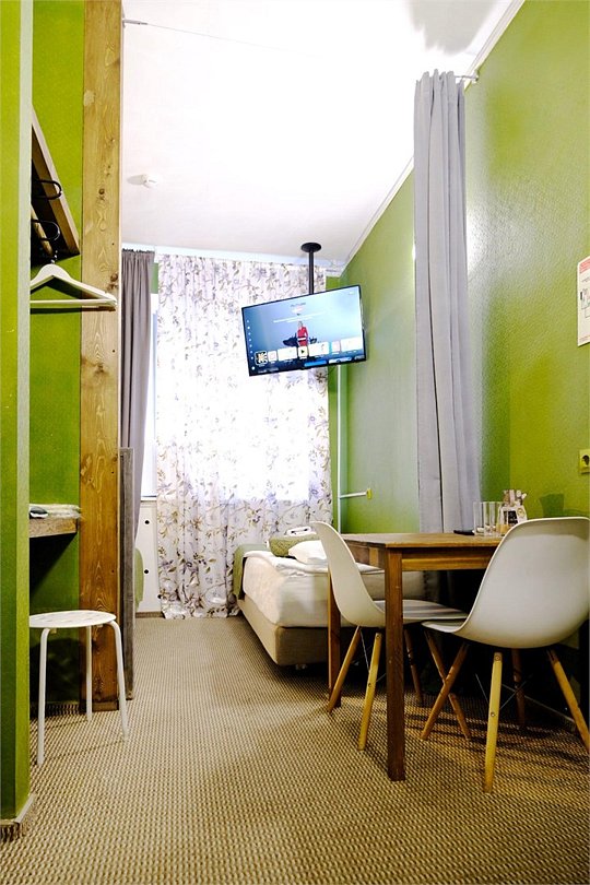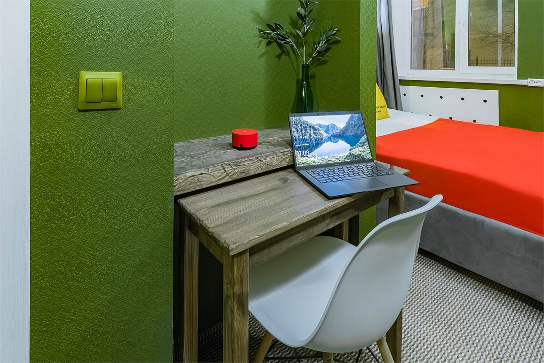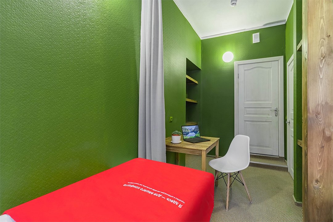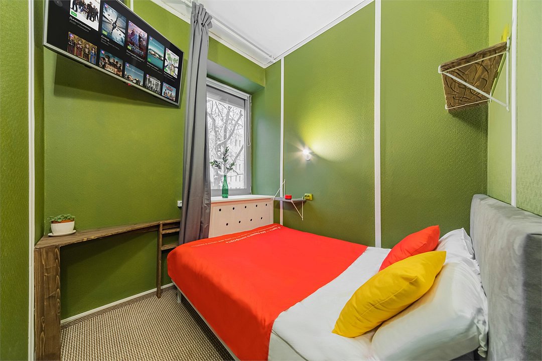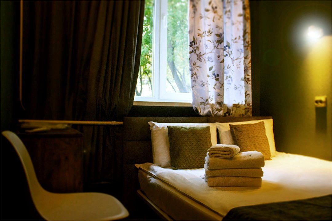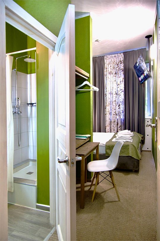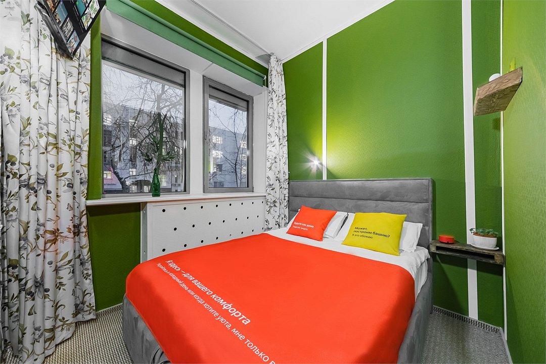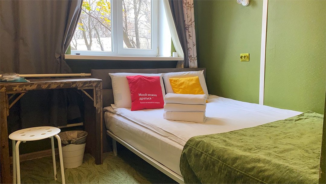 Уникальное предложение для путешествующих с большим количеством багажа, ручной клади или вещей. В номере одна большая двуспальная кровать с подъемным механизмом, мягким изголовьем и боковыми частями. Уникальность подъемного механизма состоит в том, что он обеспечивает беспрепятственный доступ к пространству под основанием кровати, открывая просторную и высокую нишу для хранения вещей. Кровать с анатомическими подушками. Окно с широким подоконником защищено светонепроницаемыми шторами. Для вашего удобства в номере установлен небольшой письменный стол со стулом, небольшая открытая гардеробная с вешалками, телевизор с плоским экраном 43 дюйма с разрешением HD: 4K UHD и Станция «Алиса». Комфортное пространство для сна. Ванная комната оснащена всем необходимым оборудованием для личной гигиены со всеми необходимыми принадлежностями: большое зеркало с подсветкой, полочка для мелких вещей, фен, халат, тапочки, полотенца, мыло и шампунь. Спите и отдыхайте на здоровье! В Отеле имеется кофейня «Олива», которая специализируется в профессиональном приготовлении кофе и свежей выпечки. В кофейне можно заранее заказать завтрак. Подача завтрака с 09:00 до 11:00. Кофейня работает с 09:00 до 23:00.Услуги и удобства