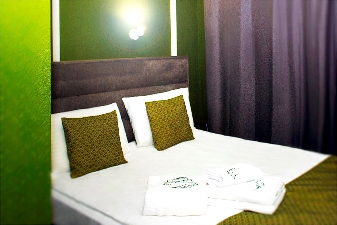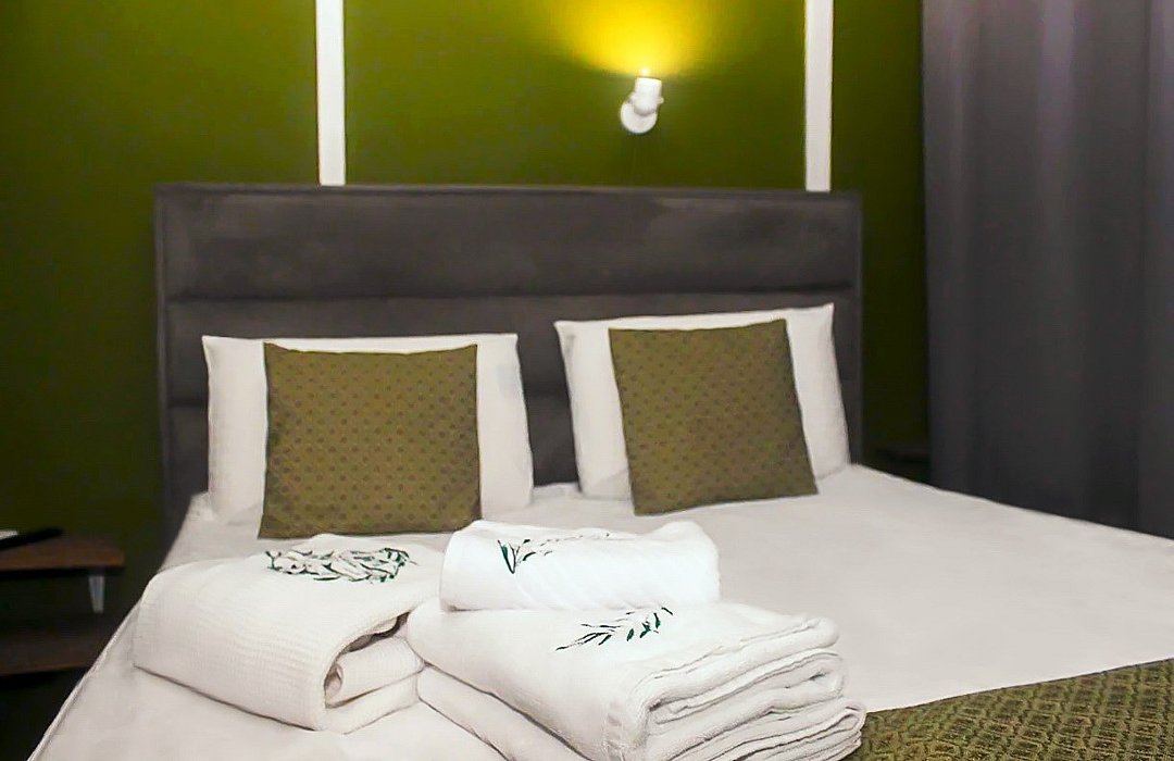 Идеальный вариант для экономных путешественников. В номере одна большая двуспальная кровать с мягким изголовьем и анатомическими подушками. Окно с широким подоконником защищено светонепроницаемыми шторами. Для вашего удобства в номере установлен небольшой письменный стол со стулом, вешалки, телевизор с плоским экраном 43 дюйма с разрешением HD: 4K UHD и Станция «Алиса». Ванная комната оснащена всем необходимым оборудованием для личной гигиены со всеми необходимыми принадлежностями: большое зеркало с подсветкой, полочка для мелких вещей, фен, халат, тапочки, полотенца, мыло и шампунь. Спите и отдыхайте на здоровье! В Отеле имеется кофейня «Олива», которая специализируется в профессиональном приготовлении кофе и свежей выпечки. В кофейне можно заранее заказать завтрак. Подача завтрака с 09:00 до 11:00. Кофейня работает с 09:00 до 23:00.Услуги и удобства