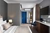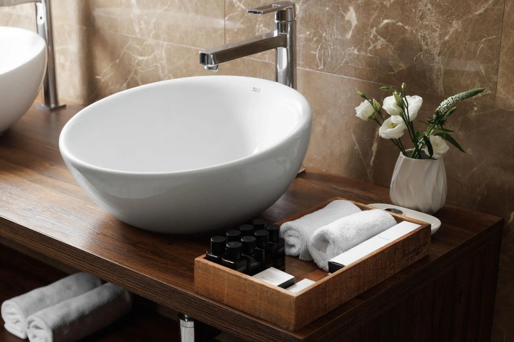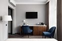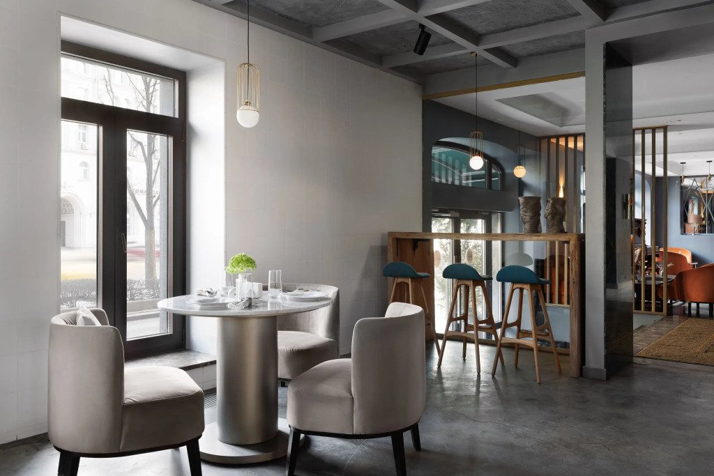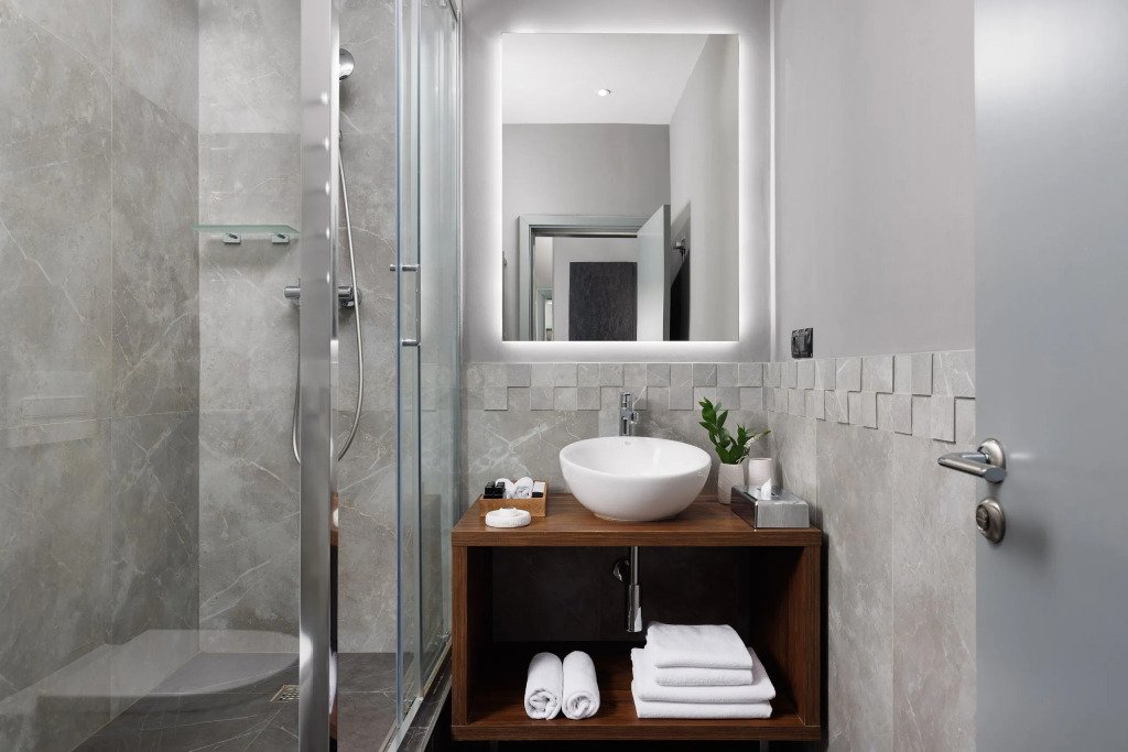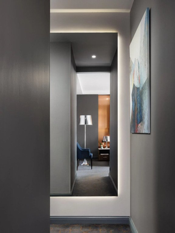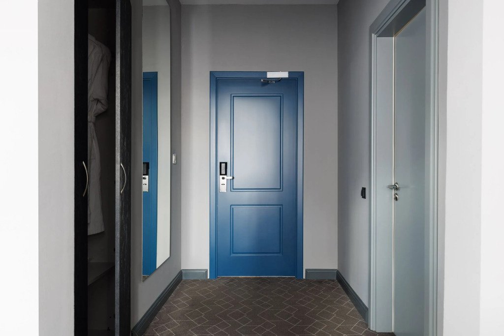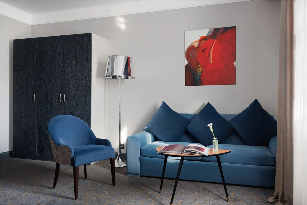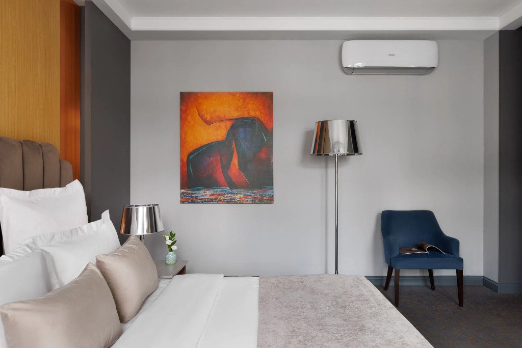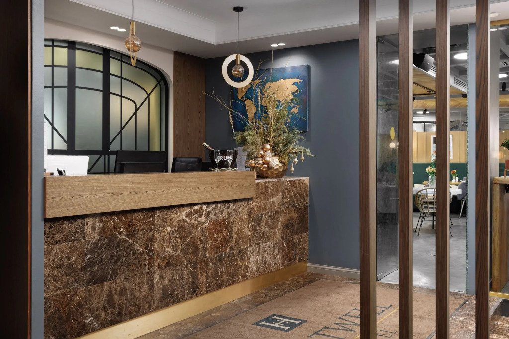 Все номера отеля выполнены в современном стиле с использованием материалов премиум класса, натурального мрамора и лучших тканей. Фасад здания облицован природным камнем.