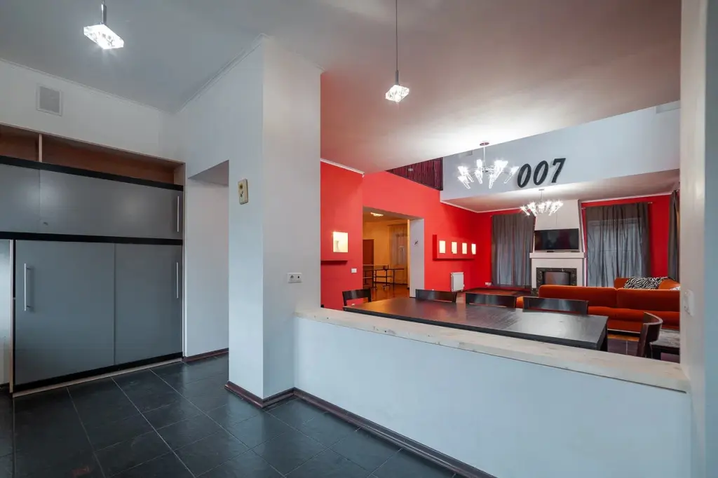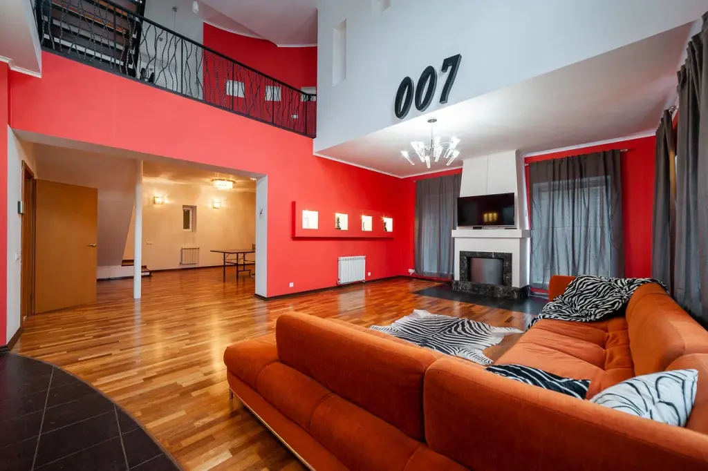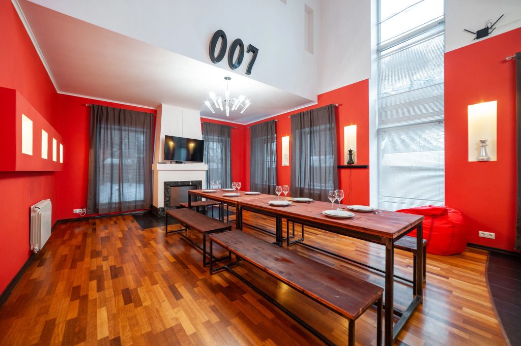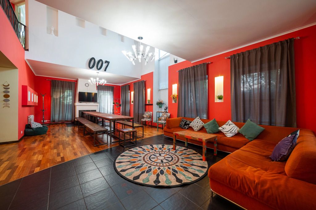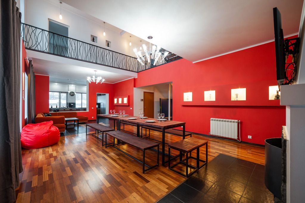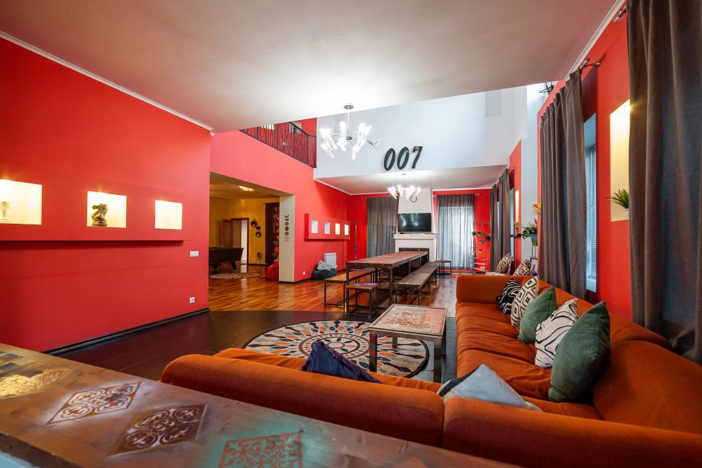 В распоряжении гостей: 14 спальных мест, 6 комнат, банкетный зал с цветовым акцентом, вмещающий 30 гостей.