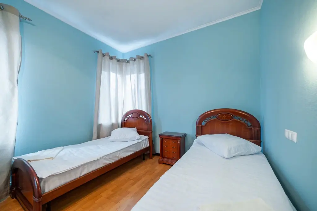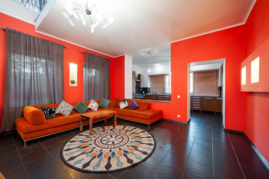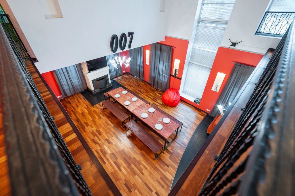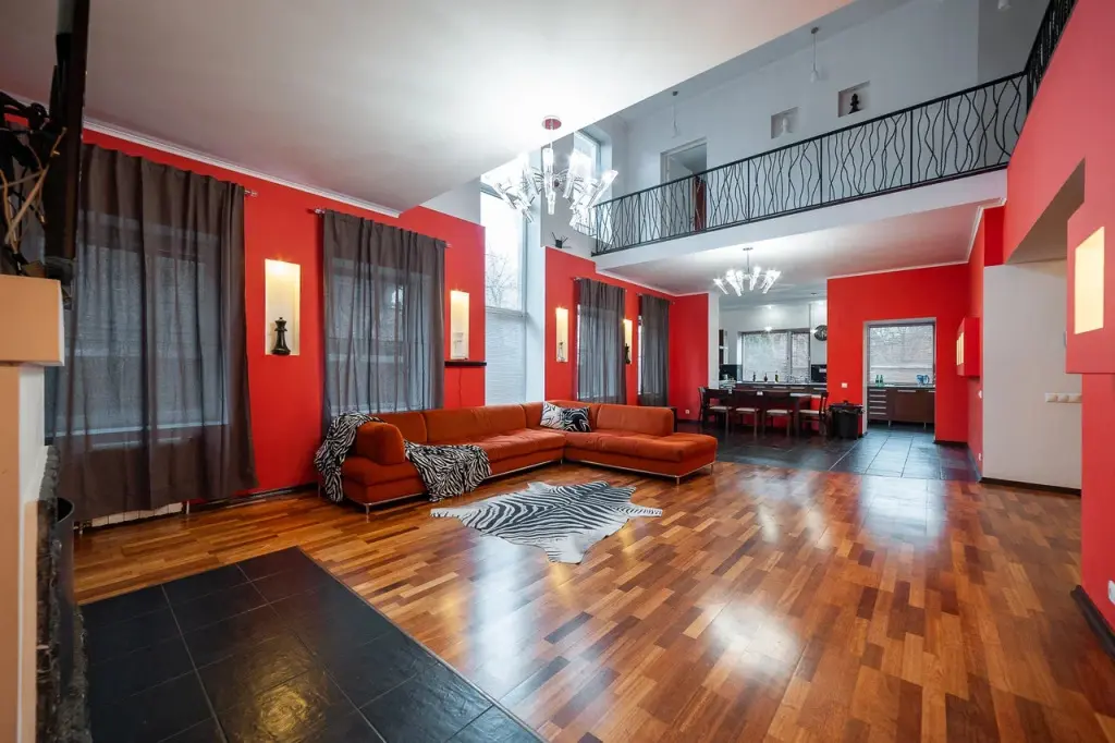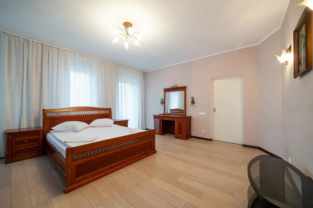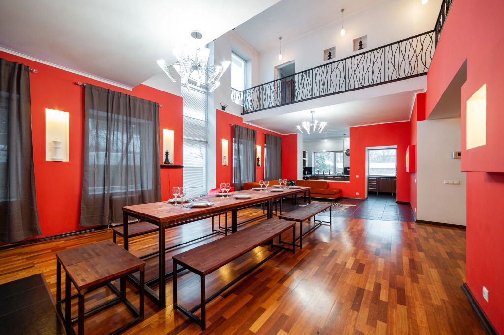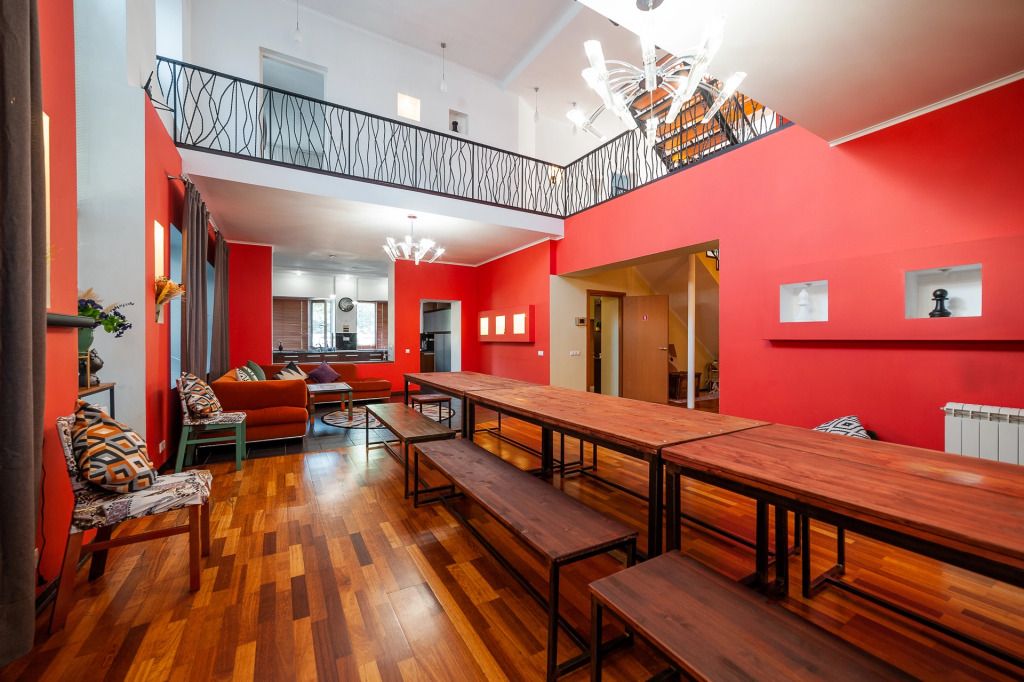 В распоряжении гостей: 14 спальных мест, 6 комнат, банкетный зал с цветовым акцентом, вмещающий 30 гостей.