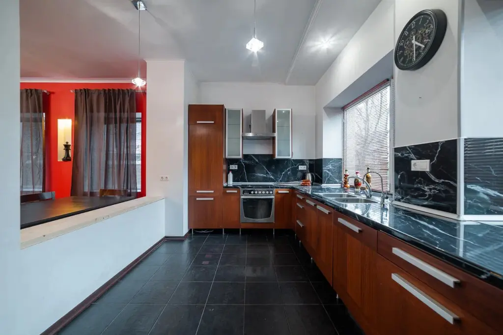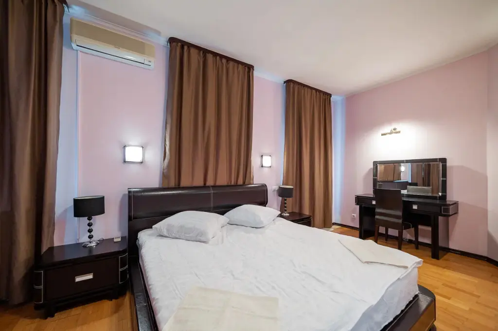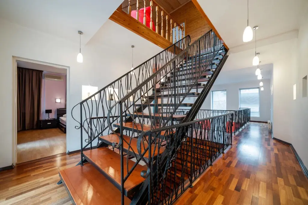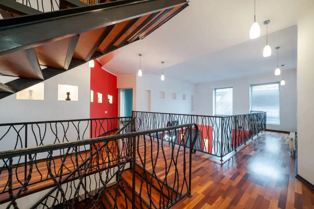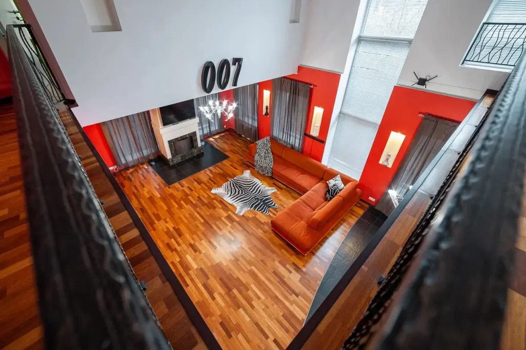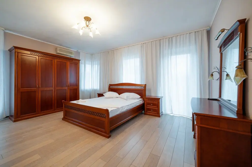 В распоряжении гостей: 14 спальных мест, 6 комнат, банкетный зал с цветовым акцентом, вмещающий 30 гостей.