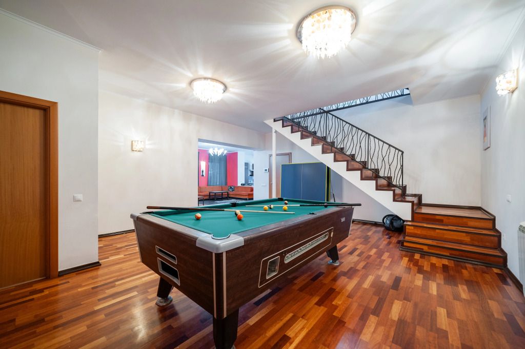 На территории особняка предусмотрены различные виды развлечений, такие как настольный теннис, настольные игры и бильярд, чтобы гости могли насладиться активным отдыхом.